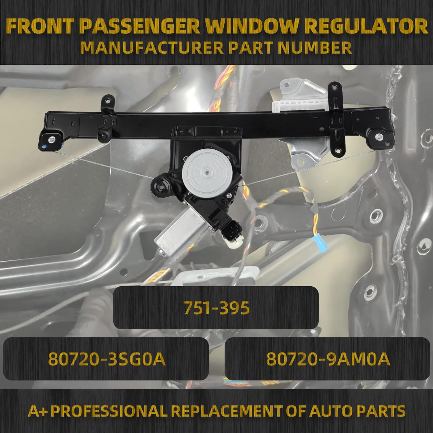 O regulador de janela elétrica Dasbecan com motor para o lado do passageiro dianteiro direito é a solução ideal para quem possui um Nissan Sentra dos anos 2013 a 2019. Este componente é projetado para substituir as peças originais com os números de peça 751-395, 80720-3SG0A, 80720-9AM0A e 125-59381R, garantindo compatibilidade perfeita e desempenho superior.