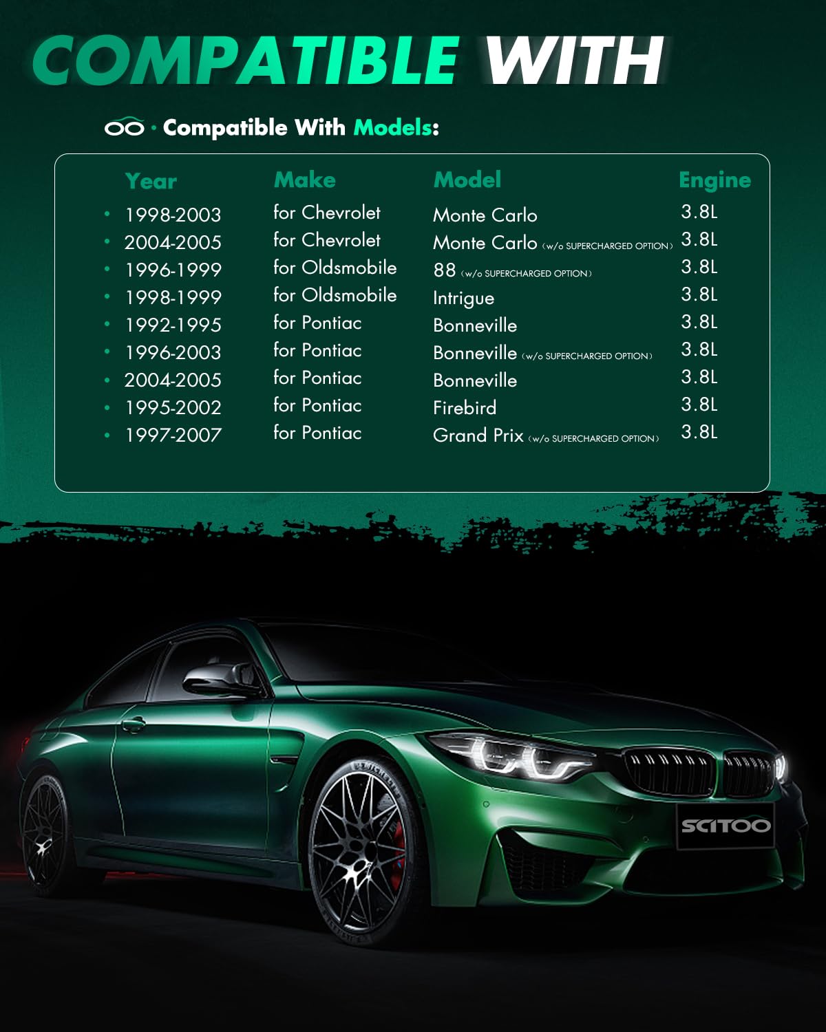 • REPLACEMENT: Compatível com modelos como Pontiac Montana 3.4L (1999-2005), Pontiac Grand Prix 3.8L (1997-2008), Oldsmobile Alero 3.4L (1999-2004), Buick Allure 3.8L (2005-2009), Buick Lucerne 3.8L (2006-2008), Buick LaCrosse 3.8L (2005-2009), Buick Park Avenue 3.8L (1991-2005), Chevrolet Impala 3.8L (2000-2005) e Chevrolet Impala 3.4L (2000-2005).