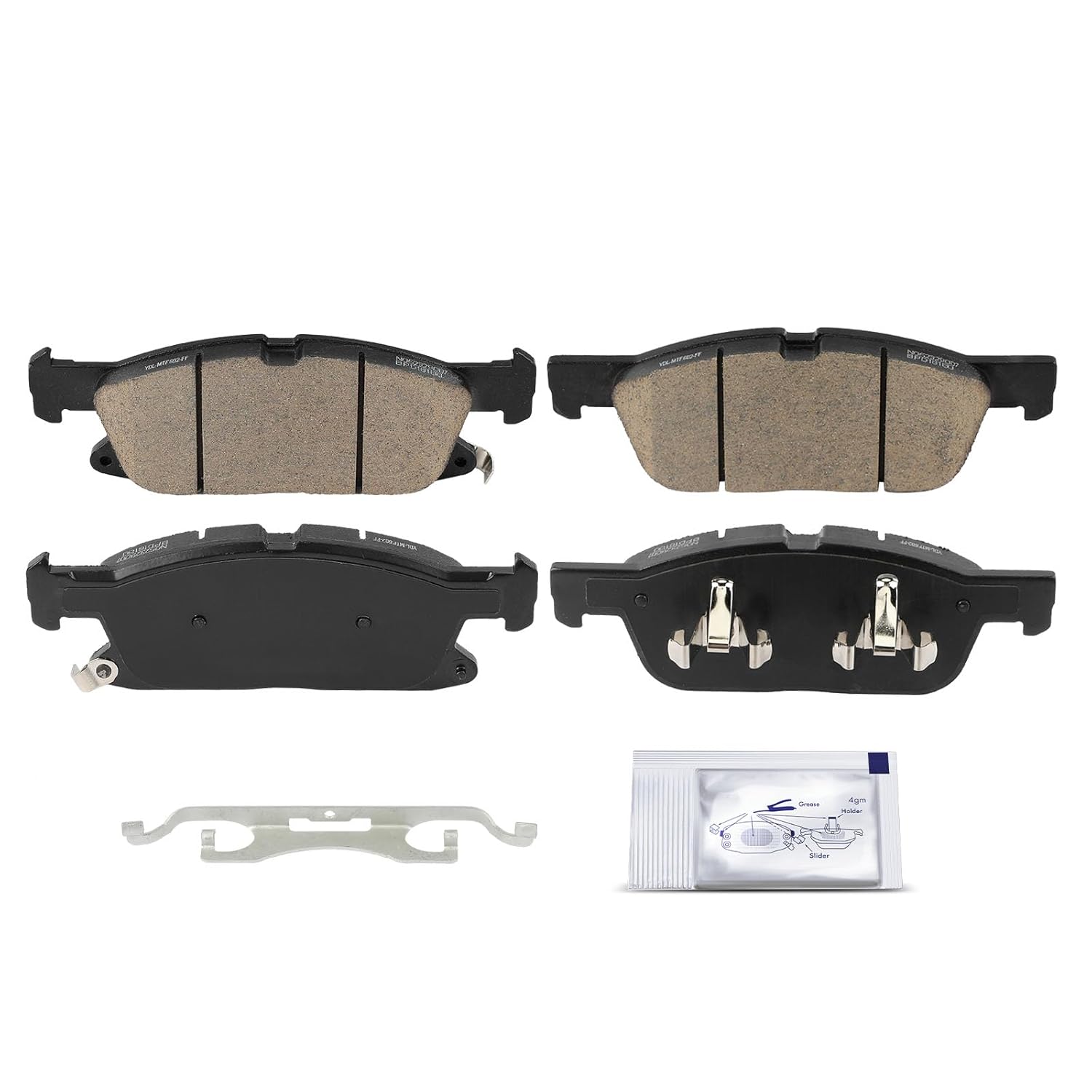Este kit de pastilhas de freio cerâmicas é um substituto direto das peças originais (OE), incluindo hardware de montagem e lubrificante para freios (graxa de alta temperatura). Antes de realizar a compra, é importante inserir as informações do seu veículo na parte superior esquerda da listagem e verificar nossa “Nota Especial”.