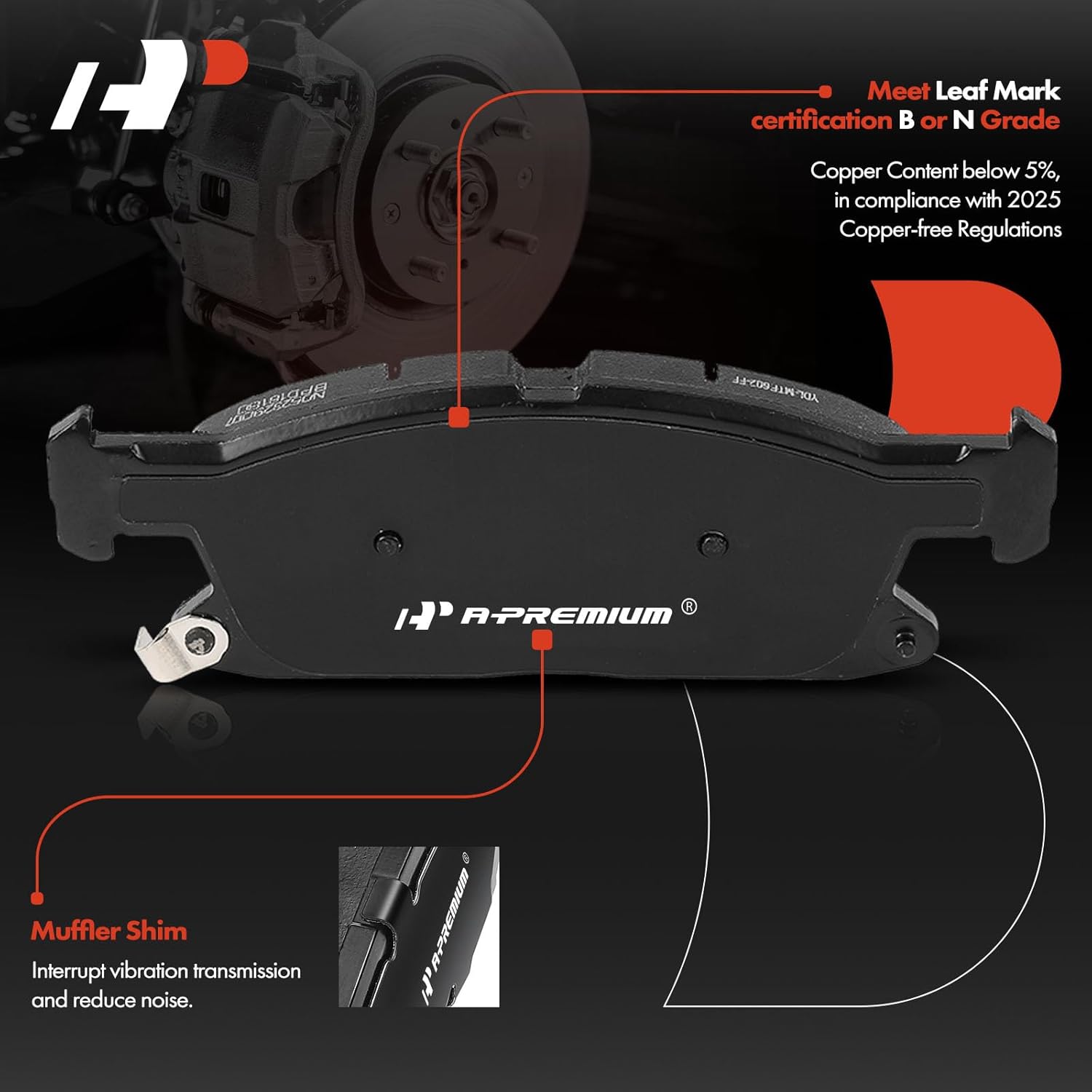 Descrição do Produto: A-Premium Front Ceramic Disc Brake Pads Set