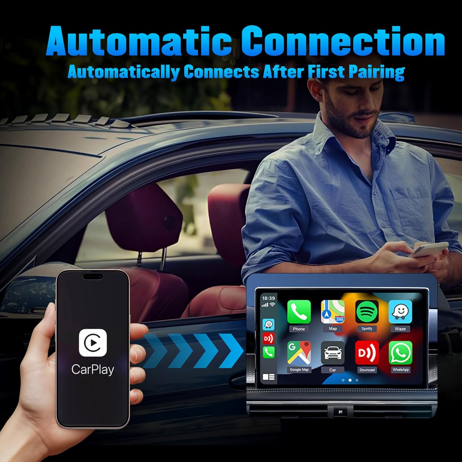 This product makes it super easy to connect to my apple car play without doing anything! Just plug it in and let it do the work! Connects automatically!