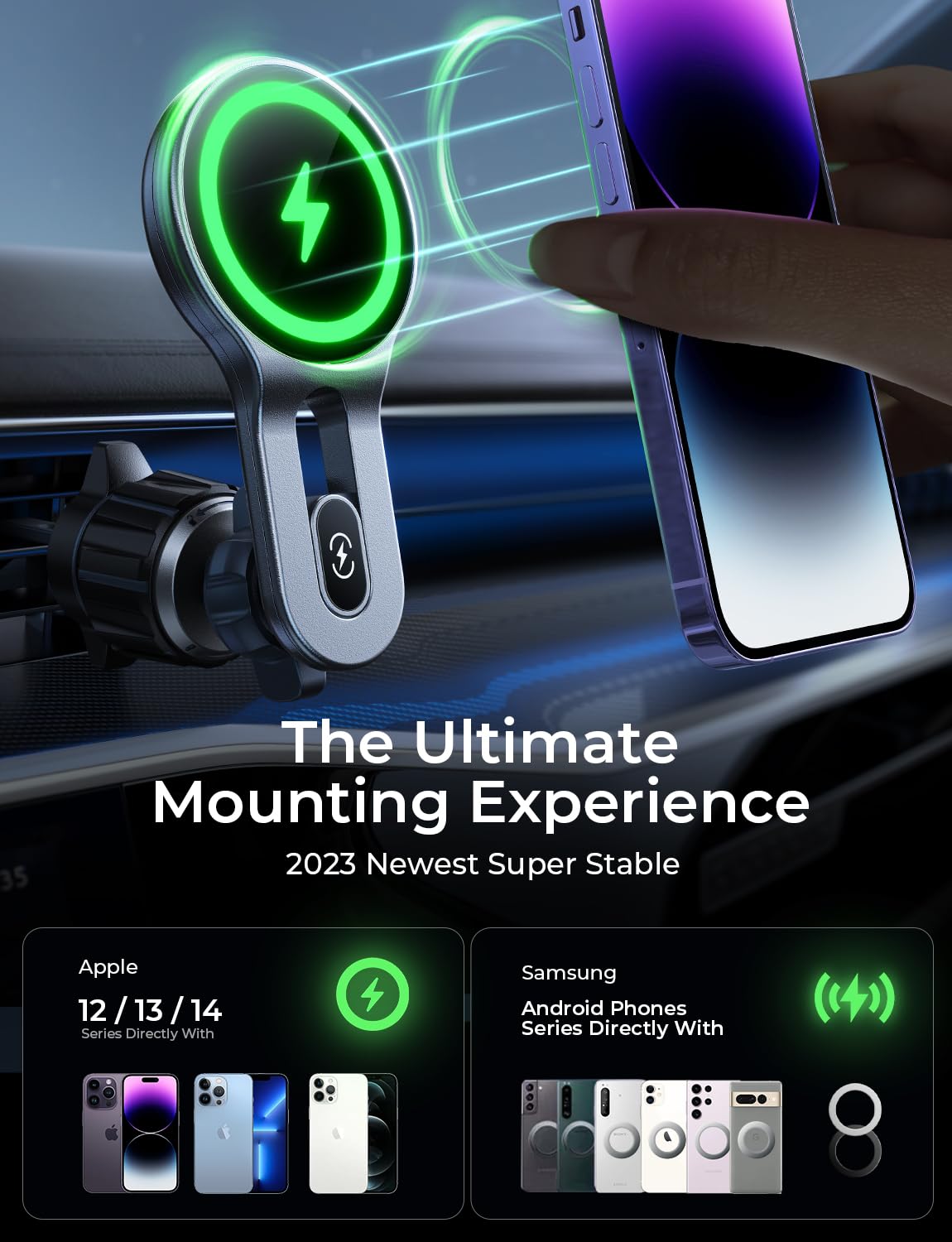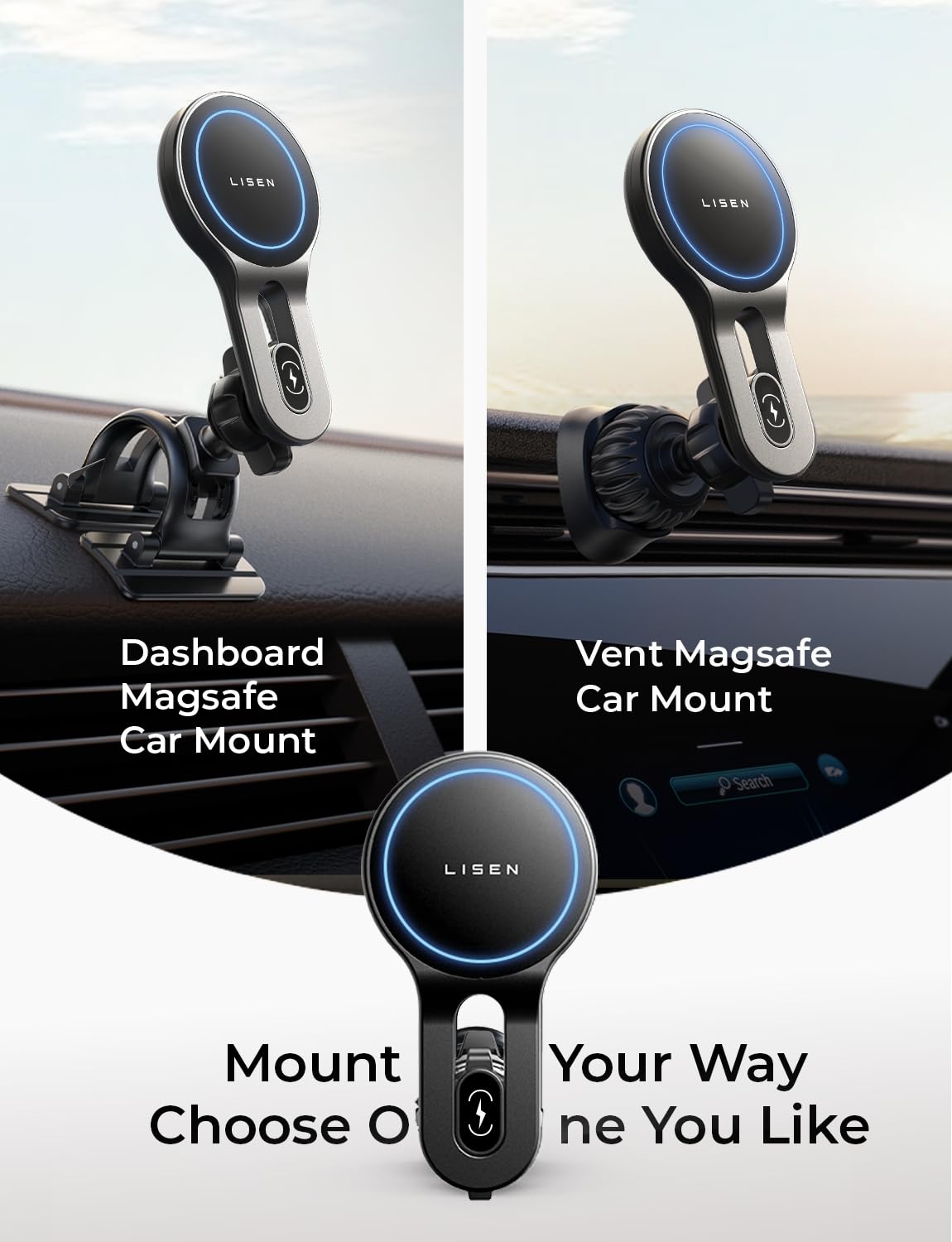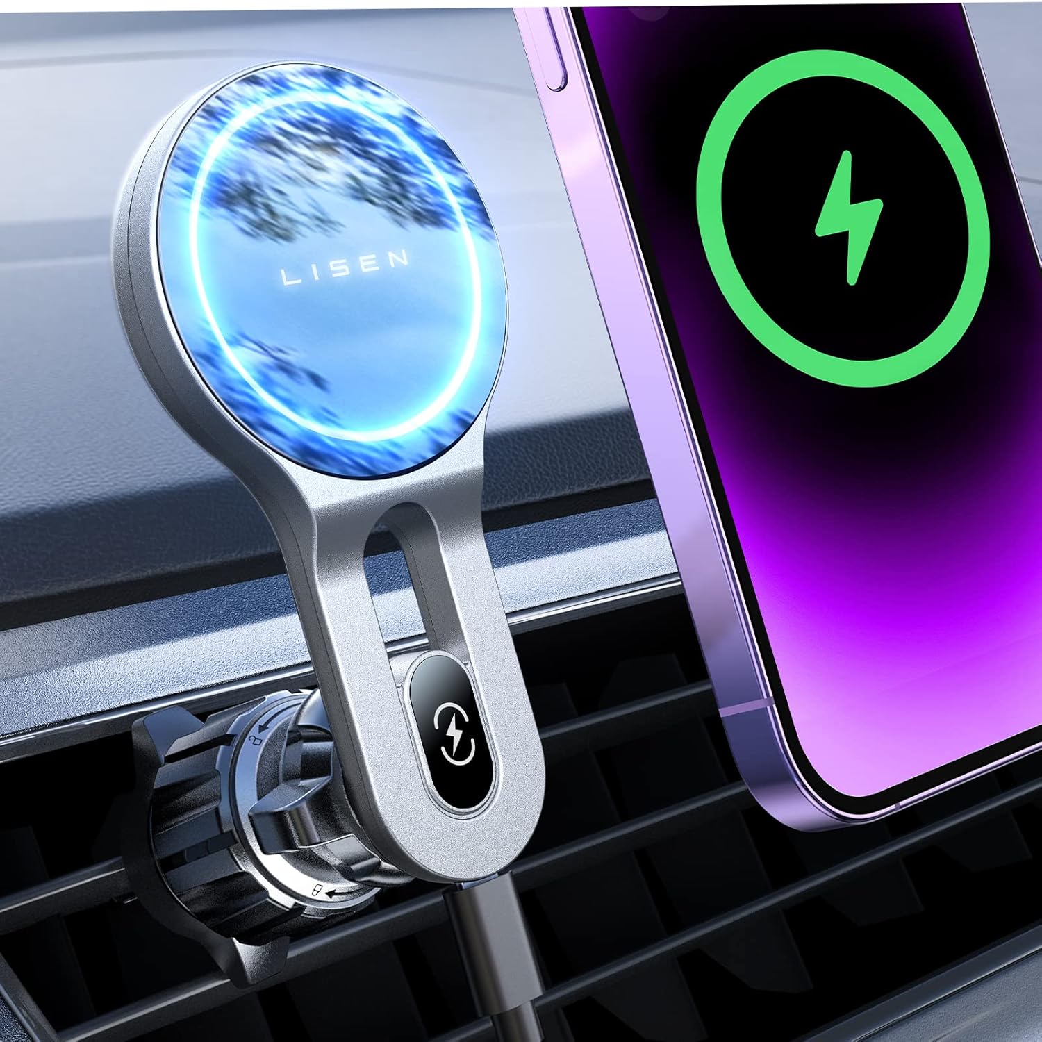 The LISEN 15W MagSafe Car Mount Charger is a fantastic accessory for anyone using an iPhone 12 and up! I’ve been using it with my iPhone 14, and it works seamlessly. The magnetic grip is strong, holding my phone securely even on bumpy roads. It’s incredibly convenient to attach and detach my phone with one hand.