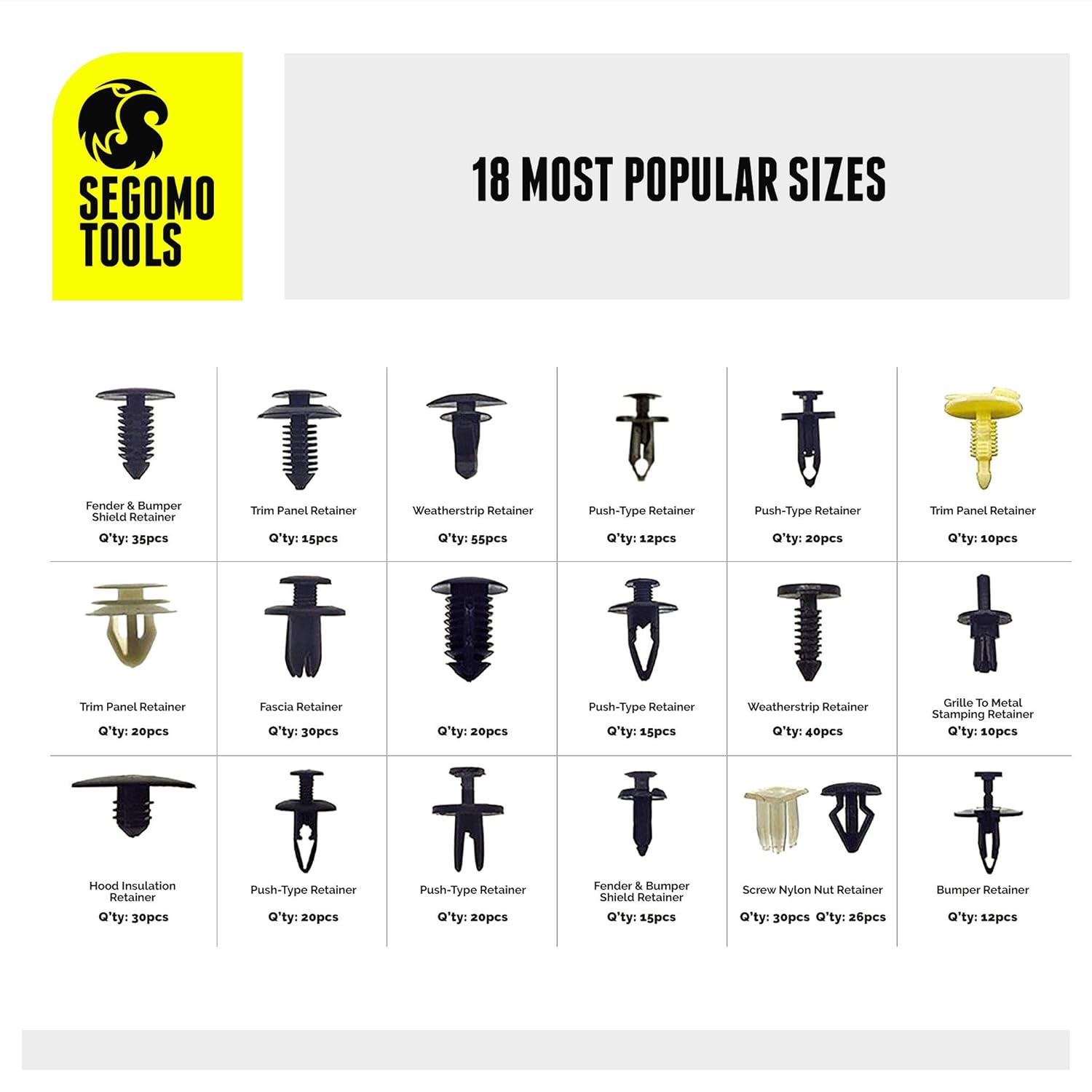 Descrição do Produto: Segomo Tools 435 Peças de Retentores para Carros, Fixadores Plásticos, Painéis de Carro