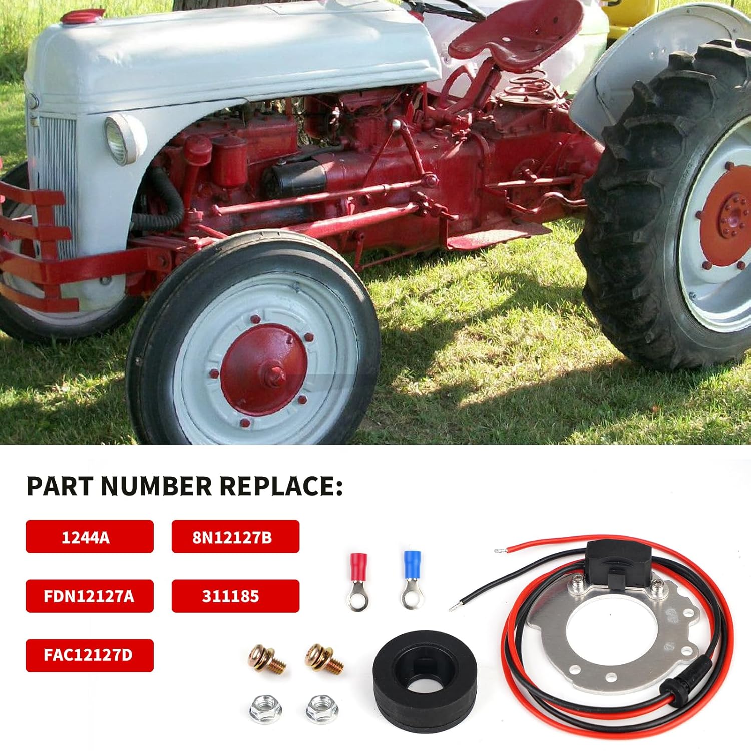 O Kit de Conversão Ignitor é a solução ideal para quem busca modernizar o sistema de ignição de tratores Ford 4 cilindros, incluindo os modelos 2N, 9N, 8N e as séries 500-800. Este kit é compatível com distribuidores de montagem lateral e sistemas de 12V, proporcionando uma atualização significativa em relação ao sistema de ignição original. O número da peça 1244A, que substitui também os códigos 8N12127B, FDN12127A, 311185 e FAC12127D, garante que você tenha a peça certa para o seu trator.