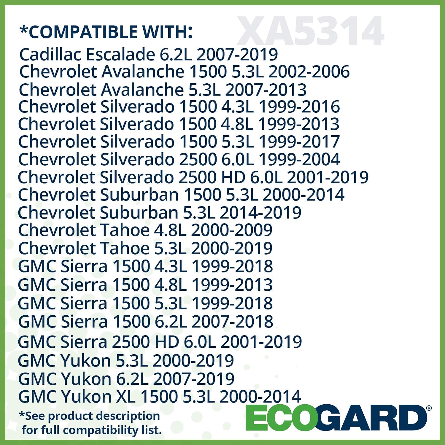 O ECOGARD XA5314 é um filtro de ar do motor premium, projetado para atender a uma ampla gama de veículos, incluindo modelos icônicos da Chevrolet e GMC, como o Tahoe, Silverado e Suburban, fabricados entre 2000 e 2014. Este filtro é compatível com os seguintes modelos: