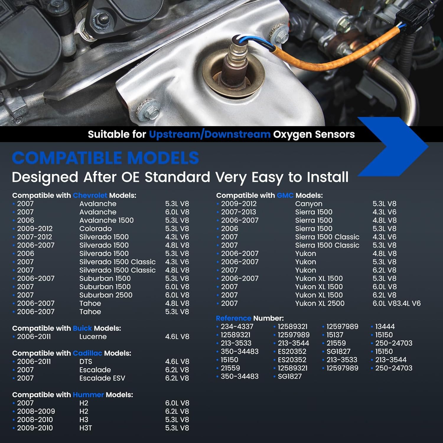 - Modelos de Veículos Compatíveis: Compatível com Buick Lucerne (2006-2011) 4.6L; Cadillac DTS 4.6L, Escalade (ESV) 6.2L; Hummer H2 (6.0L/6.2L) e H3/H3T (5.3L); Chevy Avalanche (5.3L/6.0L), Colorado (5.3L), Silverado 1500 (2007-2012) 4.3L/4.8L, Suburban 1500/2500 (6.0L), Tahoe (4.8L/5.3L); GMC Canyon (2009-2012) 5.3L, Sierra 1500 (2007-2013) 4.3L/5.3L, Yukon (4.8L/5.3L/6.2L) e Yukon XL 1500.