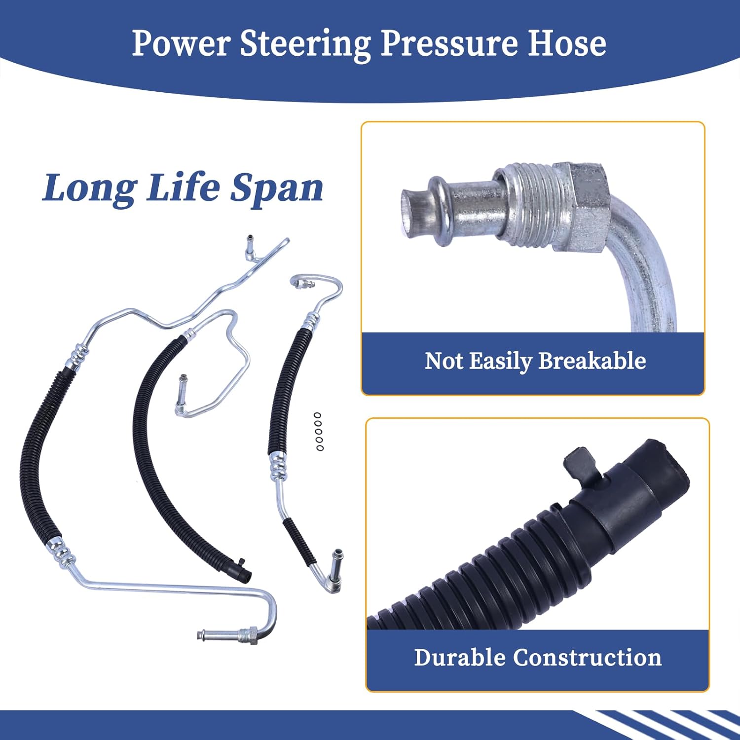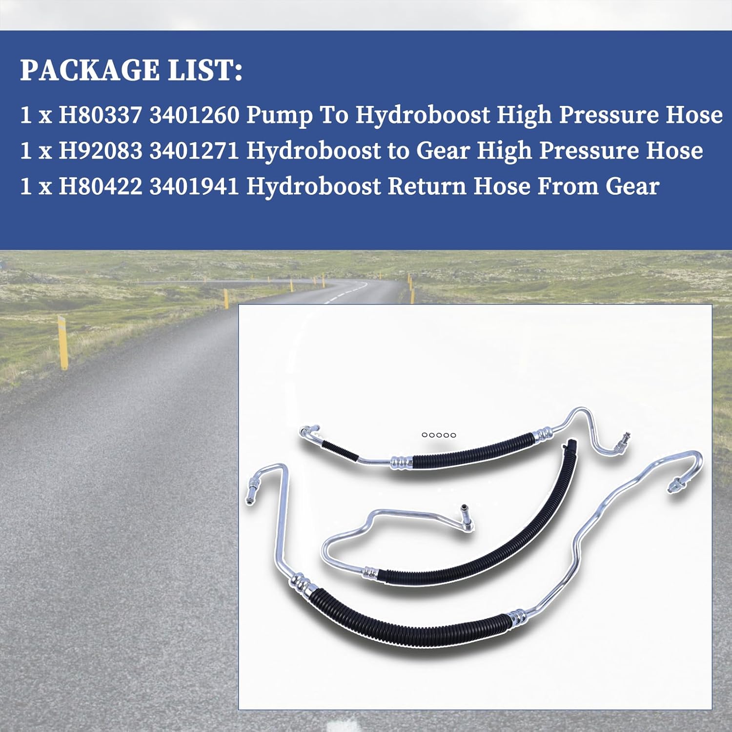 • [Substituição de Número de Peça]: Inclui 1 x 3401260 Mangueira de Alta Pressão da Bomba para Hydroboost; 1 x 3401271 Mangueira de Alta Pressão do Hydroboost para a Direção; 1 x 3401941 Mangueira de Retorno do Hydroboost da Direção; 365453 358980.