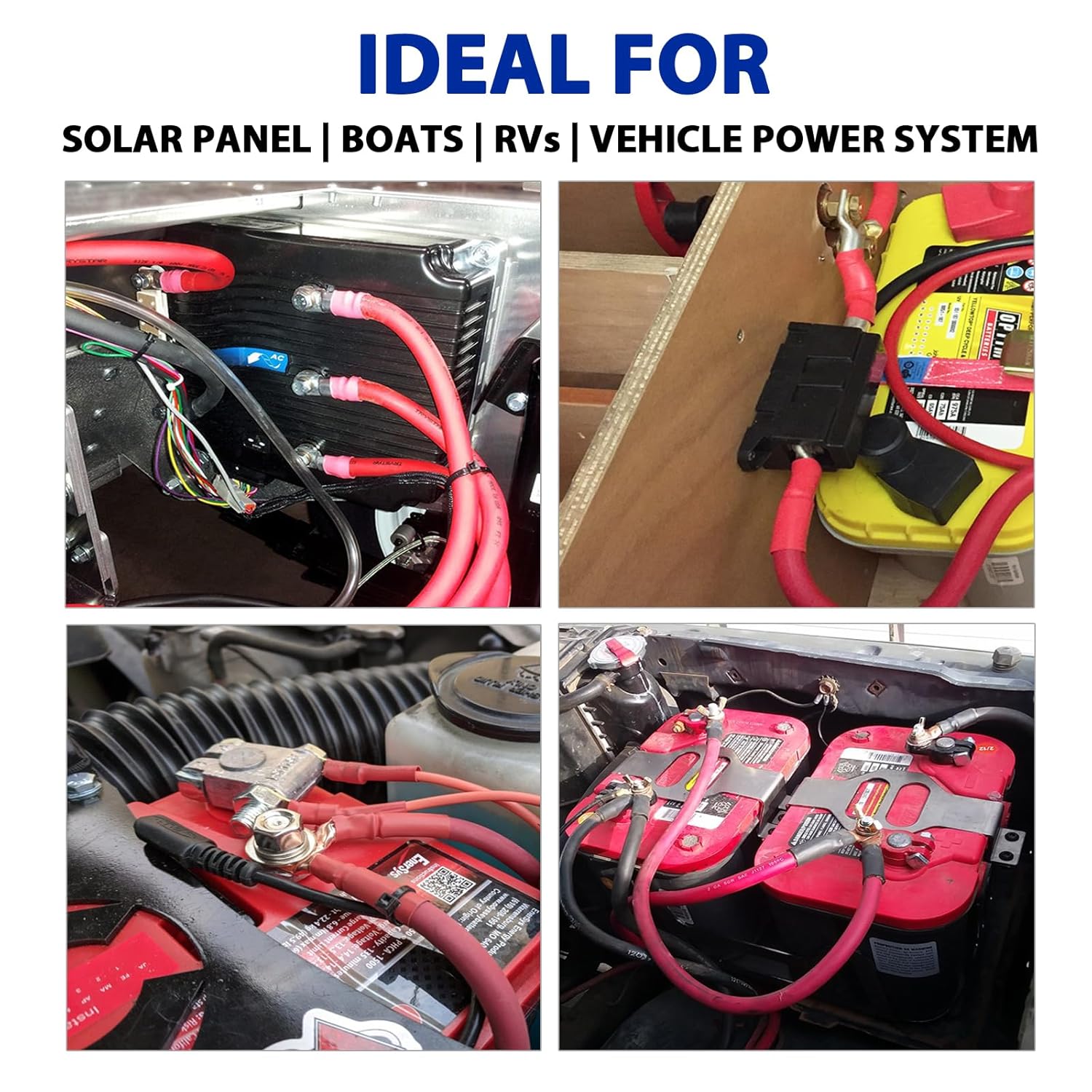 O Kit de Cabo de Bateria 1/0 Gauge é a solução ideal para quem busca eficiência e confiabilidade em suas instalações elétricas automotivas e de energia renovável. Composto por cabos de 18 polegadas nas cores preta e vermelha, este kit inclui terminais SC e tubos termocontráteis, oferecendo tudo o que você precisa em um único pacote. A conveniência de ter todos os itens necessários para suas necessidades de instalação torna este produto uma escolha inteligente para entusiastas de automóveis, proprietários de RVs, motociclistas e usuários de sistemas solares.