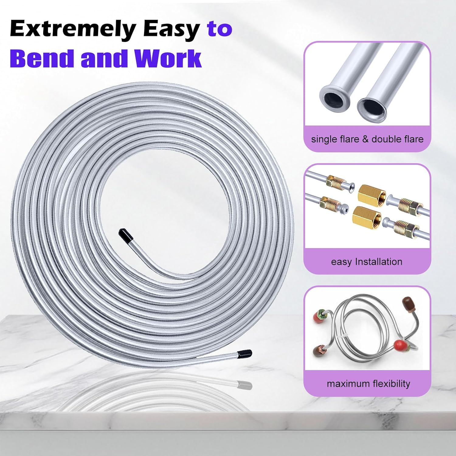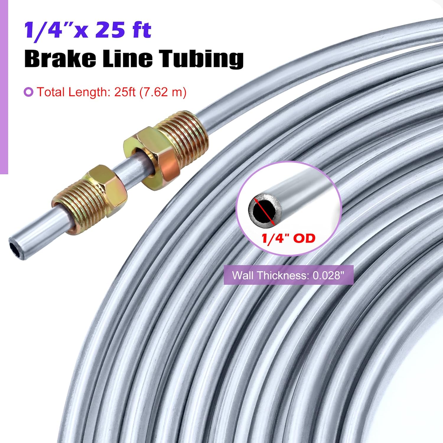 O Kit de Tubo de Freio de 1/4″ – 25 pés de tubo flexível revestido de cobre é a solução ideal para quem busca qualidade e durabilidade em sistemas de freio hidráulico, sistemas de transmissão de combustível e muito mais. Com 25 pés de linha de freio de 1/4″, este produto é feito com uma superfície revestida de cobre, que oferece resistência à corrosão e uma durabilidade excepcional, garantindo que você tenha um desempenho confiável em qualquer aplicação.