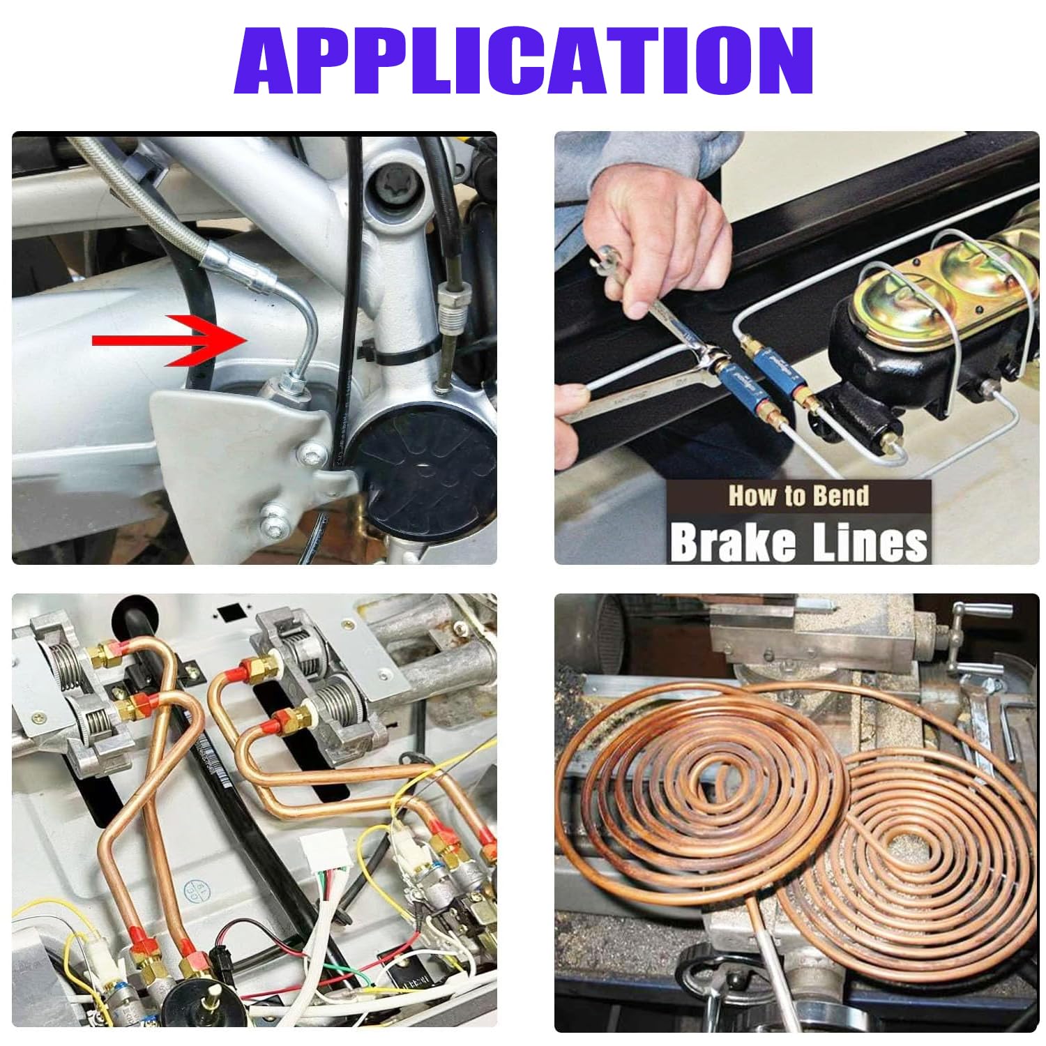 A flexibilidade do tubo permite que ele seja facilmente moldado à mão, especialmente quando utilizado com ferramentas de flare, tornando a operação mais simples e conveniente. O kit inclui um tubo de freio de reposição e 16 porcas de tubo invertidas, sendo 12 porcas de 1/4” (7/16-24), 2 porcas de 1/4” (9/16-18) e 2 porcas de 1/4” (1/2-20). Essa variedade de acessórios garante que você tenha tudo o que precisa para uma instalação eficiente e segura.