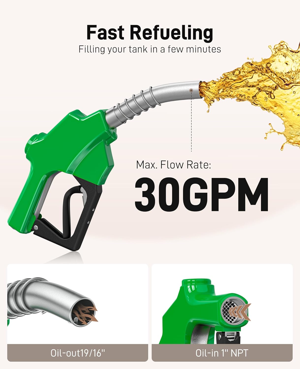 My on farm diesel barrel had a standard nozzle without the automatic shutofff that stops the flow when the tank is full, this one has that. With the price of fuel these days and environmental reasons, we don’t want to spill any fuel and this will help with that a lot. Nice construction and good rubber coating. Nice fix!