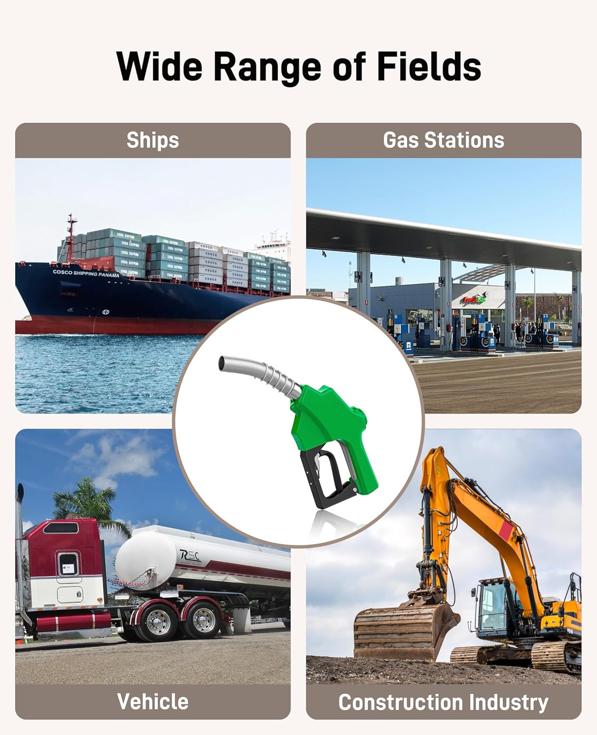 Este bico de abastecimento automático de 1 polegada é amplamente utilizado em postos de gasolina, caminhões-tanque, navios, indústrias externas e de construção. Suas capacidades de alta velocidade o tornam adequado para diversas necessidades de abastecimento, oferecendo uma variedade de serviços de gasolina e permitindo a adição de óleos em diferentes meios, como diesel, querosene e biodiesel.
