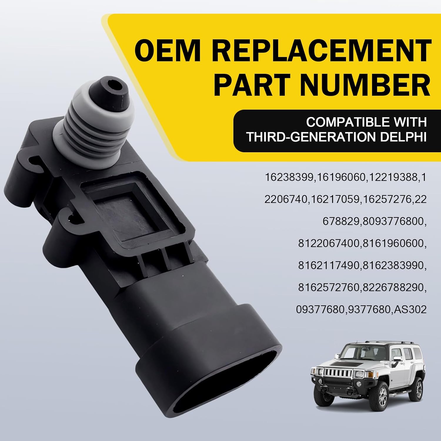 • Compatibilidade: Este sensor de carro é compatível com a terceira geração da Delphi, e os números de OEM para substituição são 16238399, 9377680, 09377680 e 16196060. Para garantir que este produto seja adequado para o seu carro, confirme o modelo antes da compra.