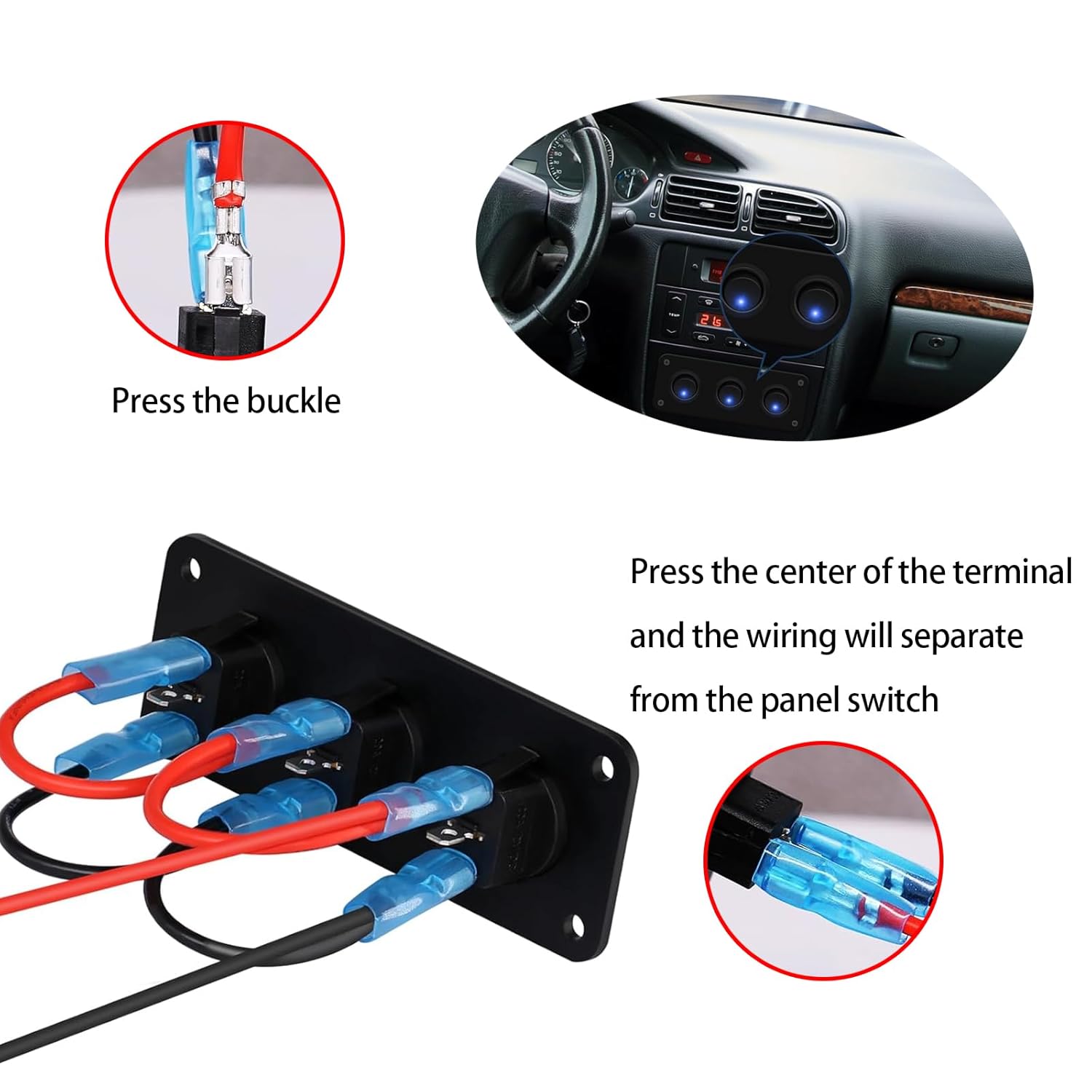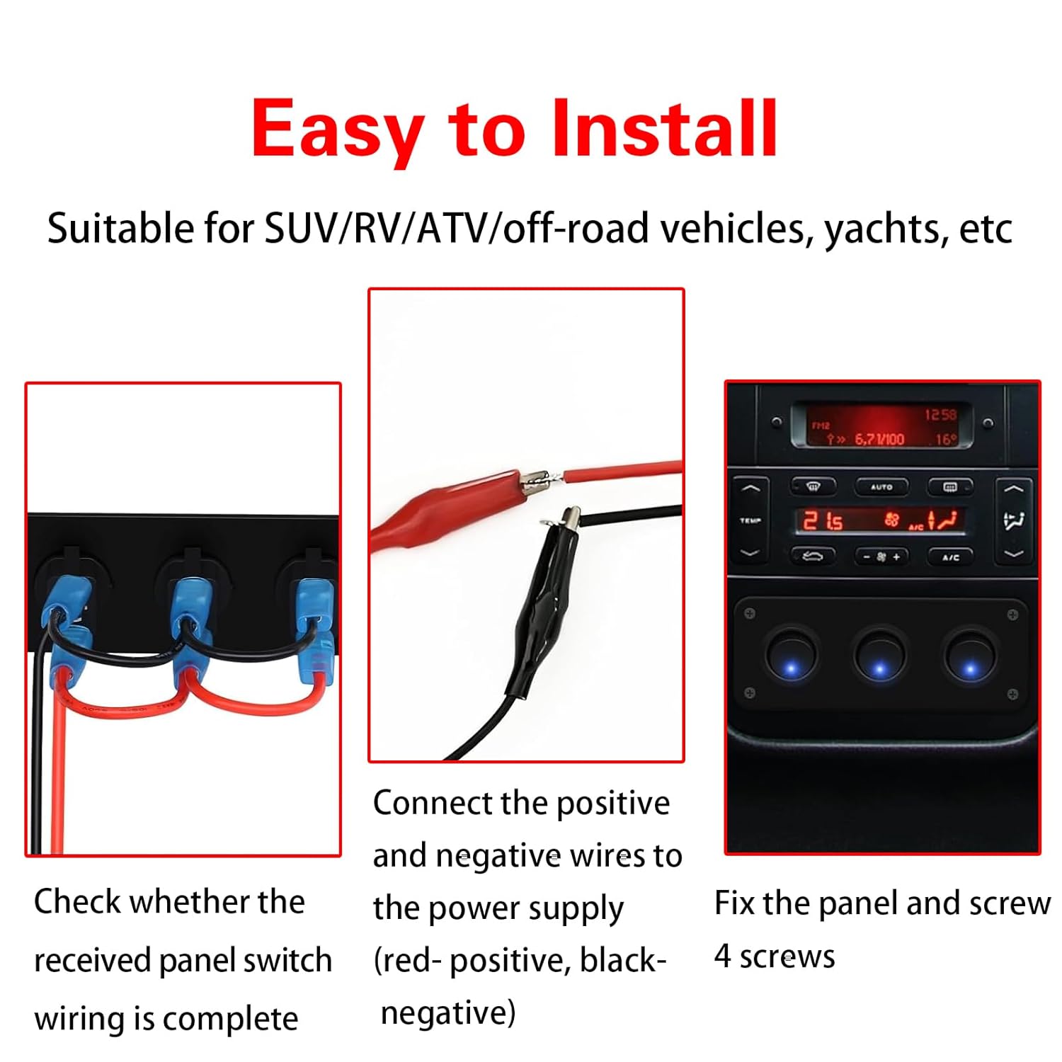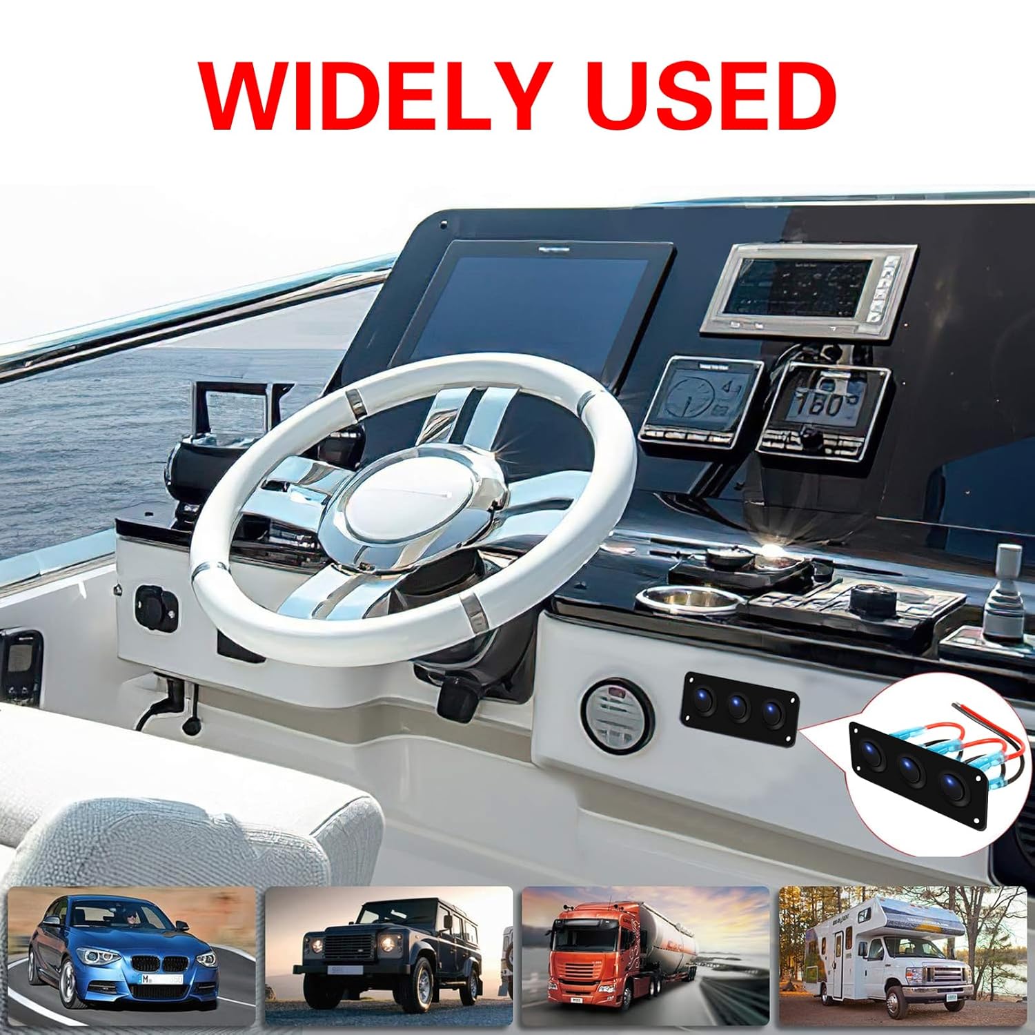 Painel de Comando com Interruptor de Olho de Gato para Carros – Um painel multifuncional com três interruptores tipo rocker, ideal para iates, trailers e RVs. Oferece controle prático e eficiente de diversos dispositivos, com design moderno e fácil instalação. Seus principais benefícios incluem durabilidade, versatilidade e a capacidade de personalizar o sistema elétrico do veículo, proporcionando maior conforto e funcionalidade durante viagens.