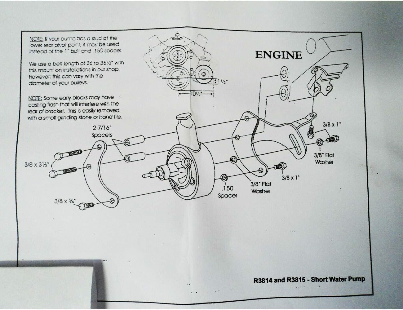 Resposta: Não, este suporte foi projetado especificamente para motores SBC Chevy 283, 305, 327, 350, 383 e 400 com bomba d’água curta.