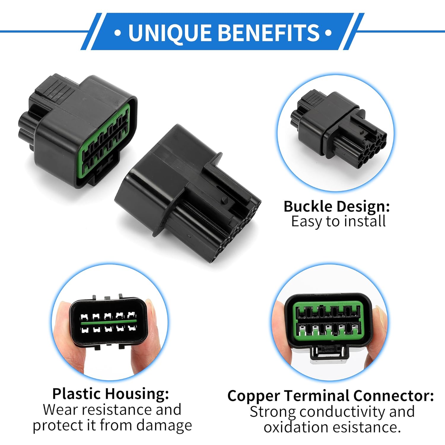 O Kit de Conectores de Fiação de 10 Pinos é a solução ideal para quem busca um conector de alta qualidade e compatível com veículos Hyundai e Kia. Este produto foi projetado para oferecer um encaixe preciso, garantindo que a instalação seja rápida e eficiente. Com um design robusto e funcional, o kit é composto por conectores plásticos pretos, tanto masculinos quanto femininos, que são resistentes à água, proporcionando uma conexão segura e confiável em diversas condições climáticas.