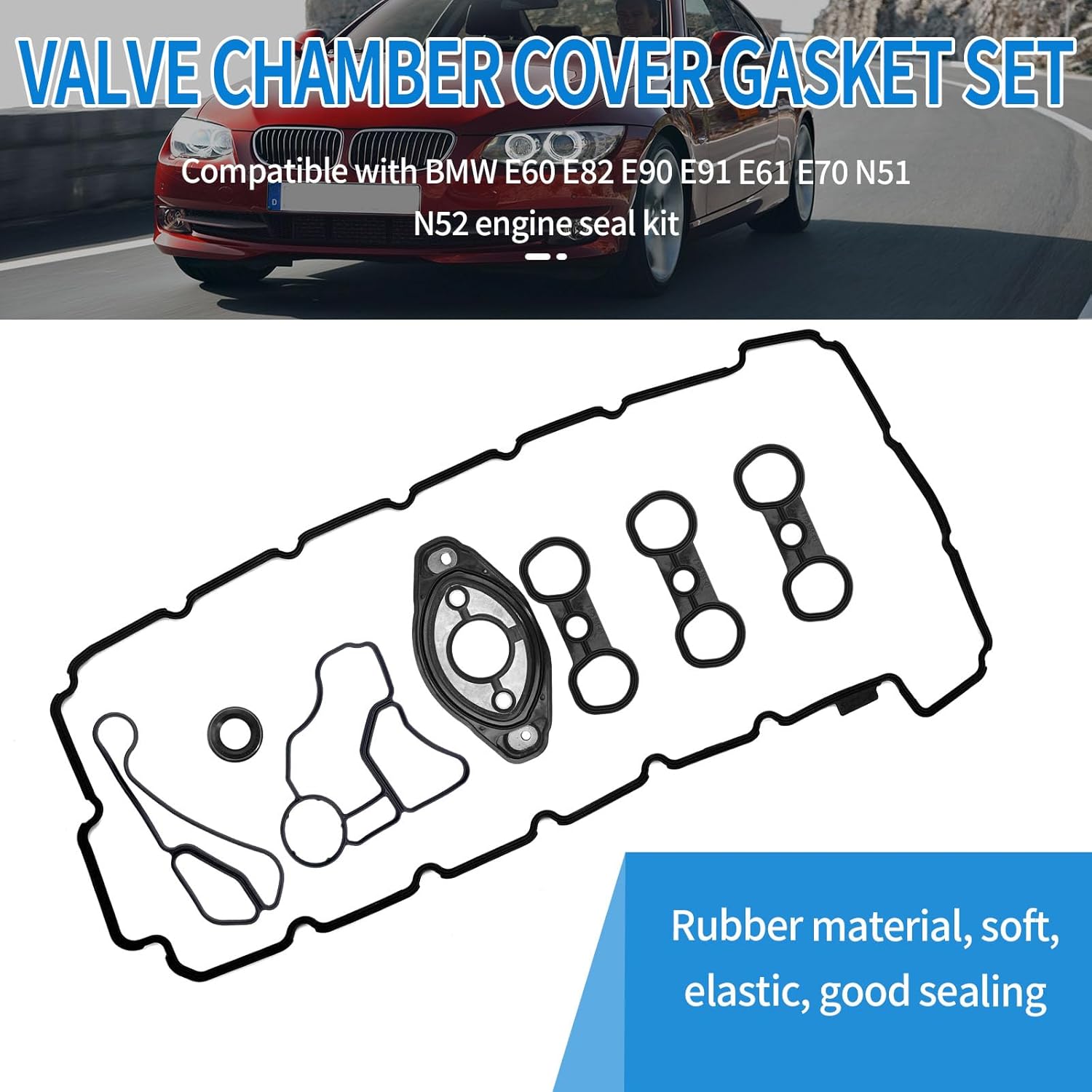 O conjunto inclui não apenas a junta da tampa de válvula, mas também um sensor de eixo excêntrico, um selo do atuador do eixo excêntrico, uma junta do filtro de óleo e uma junta do resfriador de óleo. Com o número de peça 11127552280, este produto é compatível com uma variedade de modelos, como o BMW 328i (2007-2013), 528i (2009-2010), X3 (2007-2008) e Z4 (2007-2008), entre outros. A instalação é simples, permitindo que os mecânicos e entusiastas realizem a troca sem complicações.