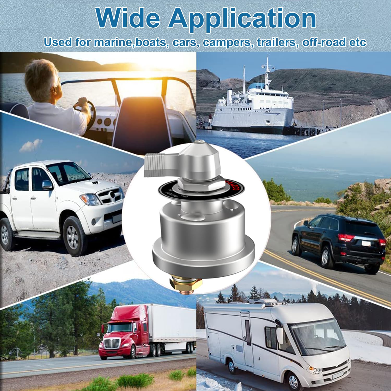 Aplicações: Este interruptor é classificado para uso contínuo em sistemas DC de 12-48V, permitindo isolar e proteger sistemas elétricos. Sua versatilidade o torna ideal para uma ampla gama de veículos e equipamentos, incluindo ATVs, trailers, UTVs, carros, motores marinhos, veículos off-road, RVs, caminhões e equipamentos elétricos.