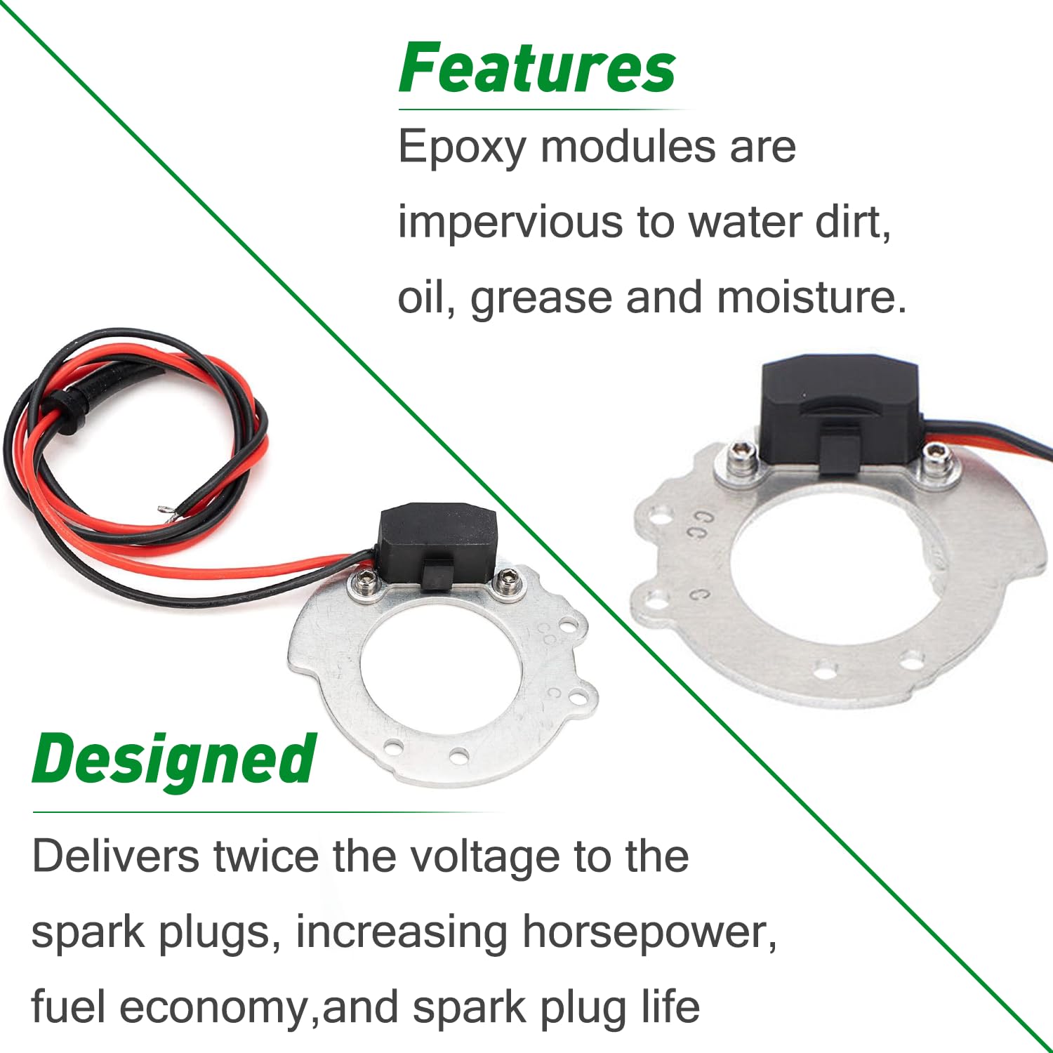 – Instalação Fácil: A instalação é simples, sem necessidade de ajustes ou fiação complicada. Funciona perfeitamente em distribuidores de ponto padrão como um gatilho para ignições CD de múltiplas faíscas. A instalação profissional é altamente recomendada, pois não inclui instruções.