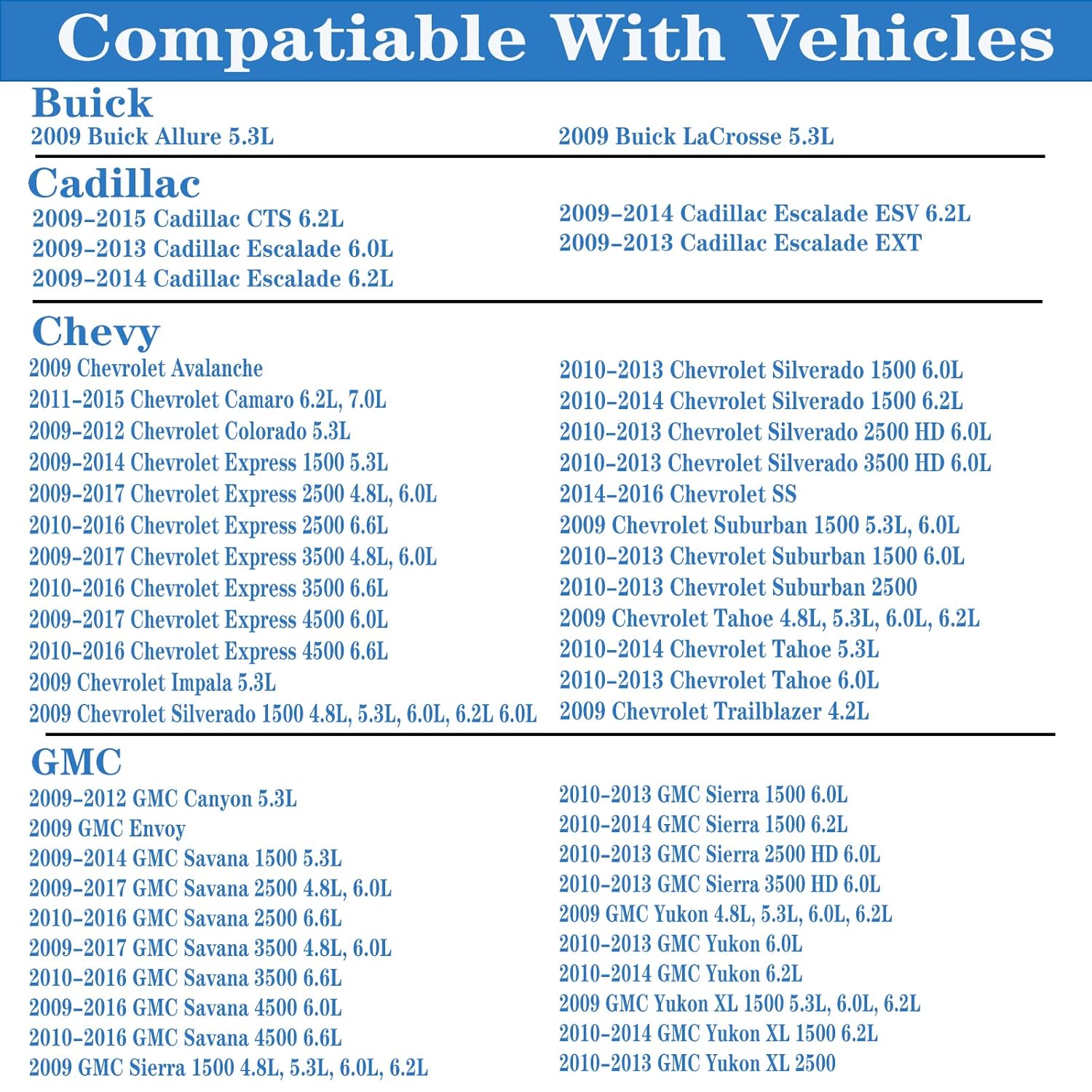 – Compatibilidade: Projetado para uma ampla gama de veículos Chevrolet, GMC, Buick, Cadillac, Hummer, Pontiac e Saab.