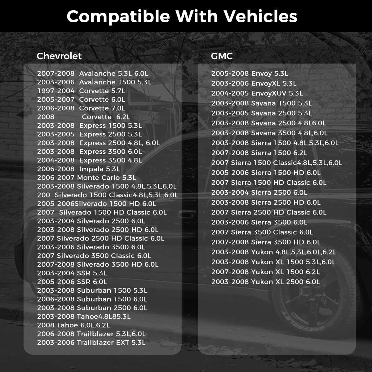 – GMC: Envoy (2003-2008), Savana (2003-2008), Sierra (2003-2008) e Yukon (2003-2008).