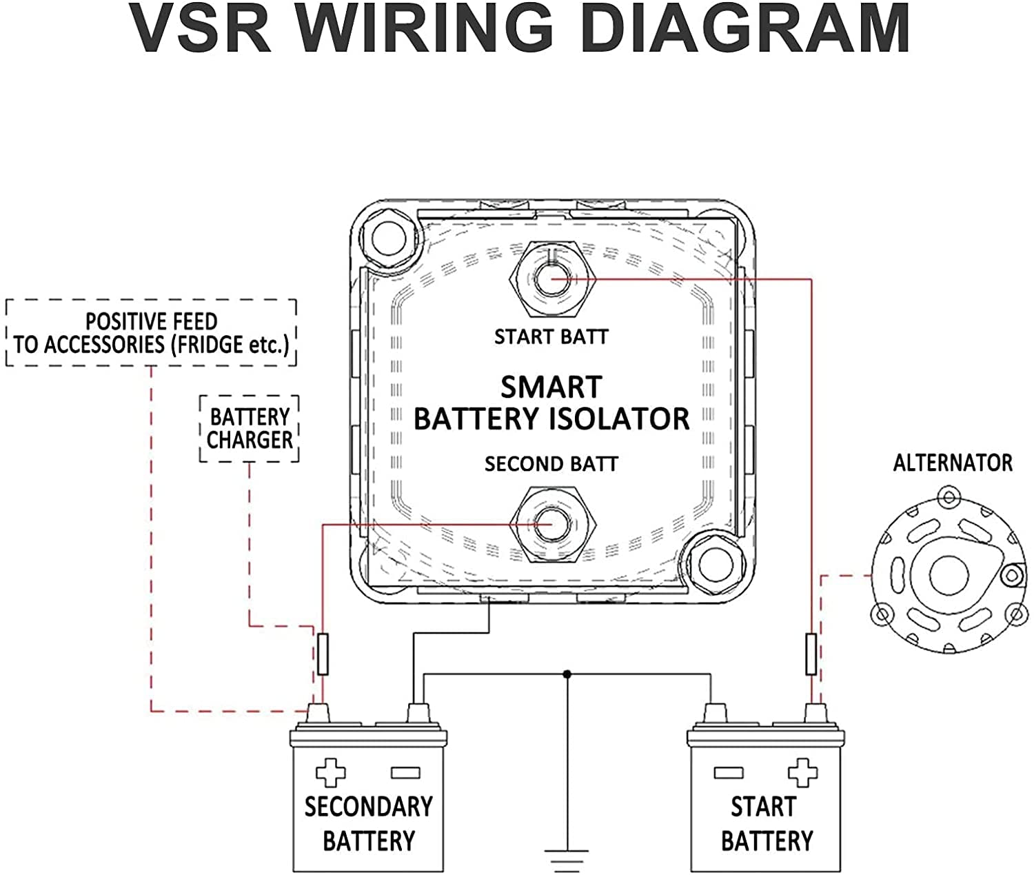 A critical piece of information (missing from product description)- this one is a DUAL VSR, means it senses voltage on both ends. There is no primary or secondary end, both ends can activate bypass relay. For my project I wanted true insolation to be able to charge house battery independently from starter one and this product does not meet my needs, because once I activate charger on a secondary house battery it closes the bypass and now I’m charging both starter and house batteries together. I need one which has red marking on one end, truly single VSR for dual battery setup.