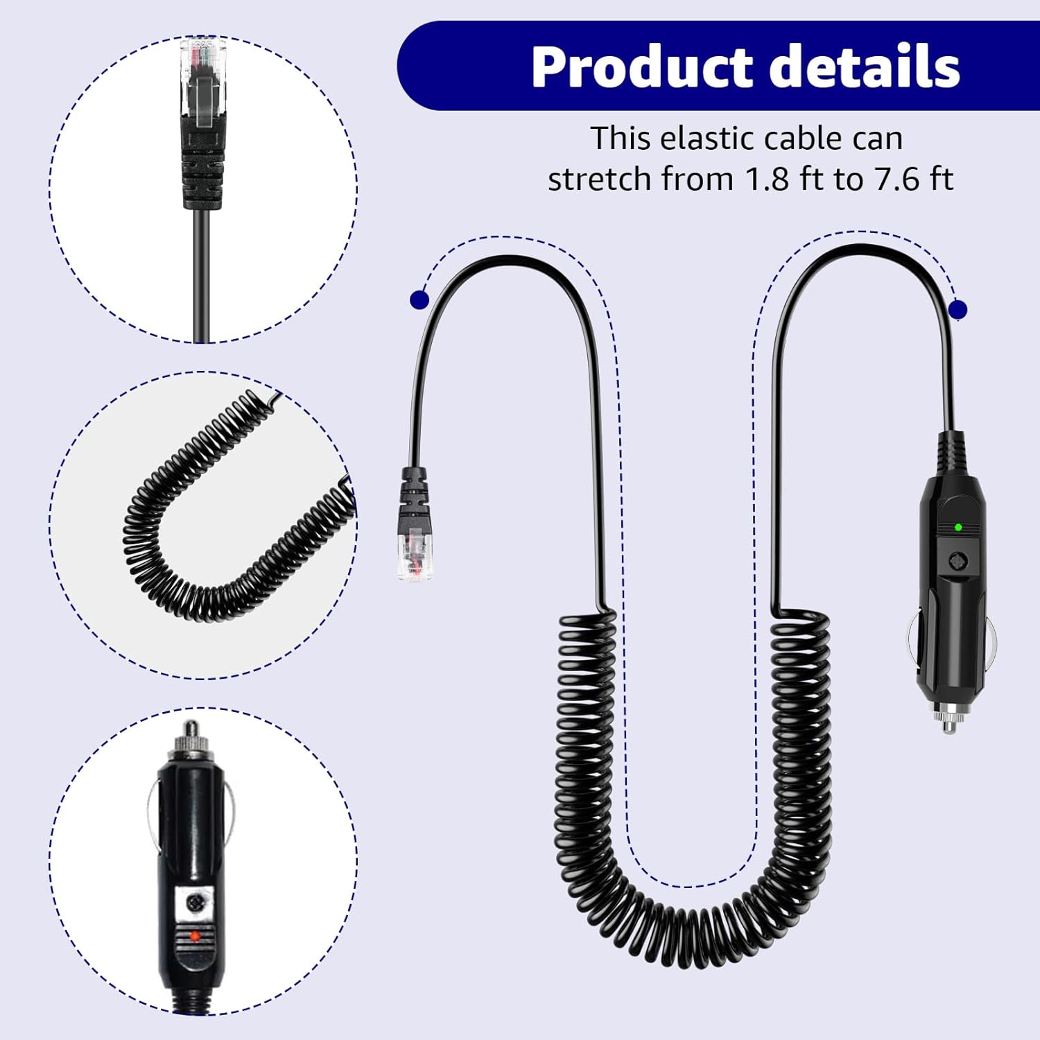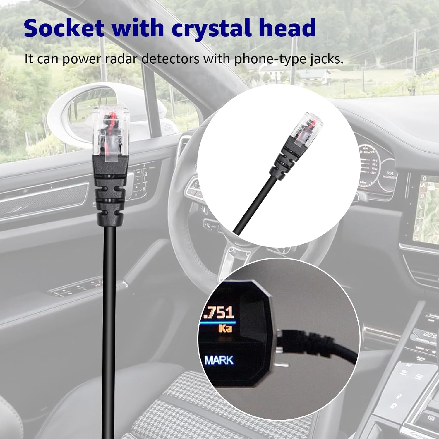 Descrição do Produto: Adaptador de Isqueiro 12V para RJ11 – Cabo de Alimentação para Detector de Radar 7,6ft