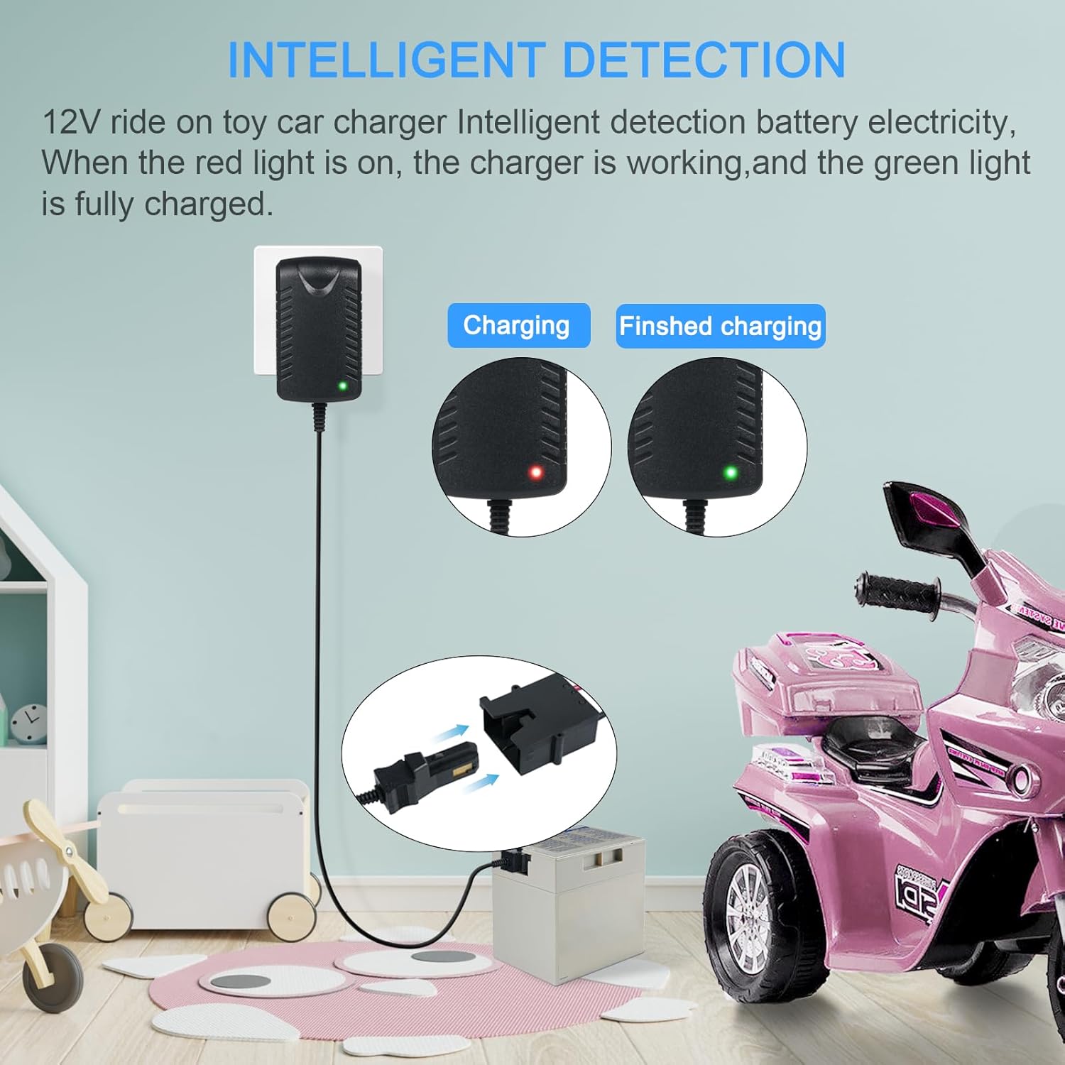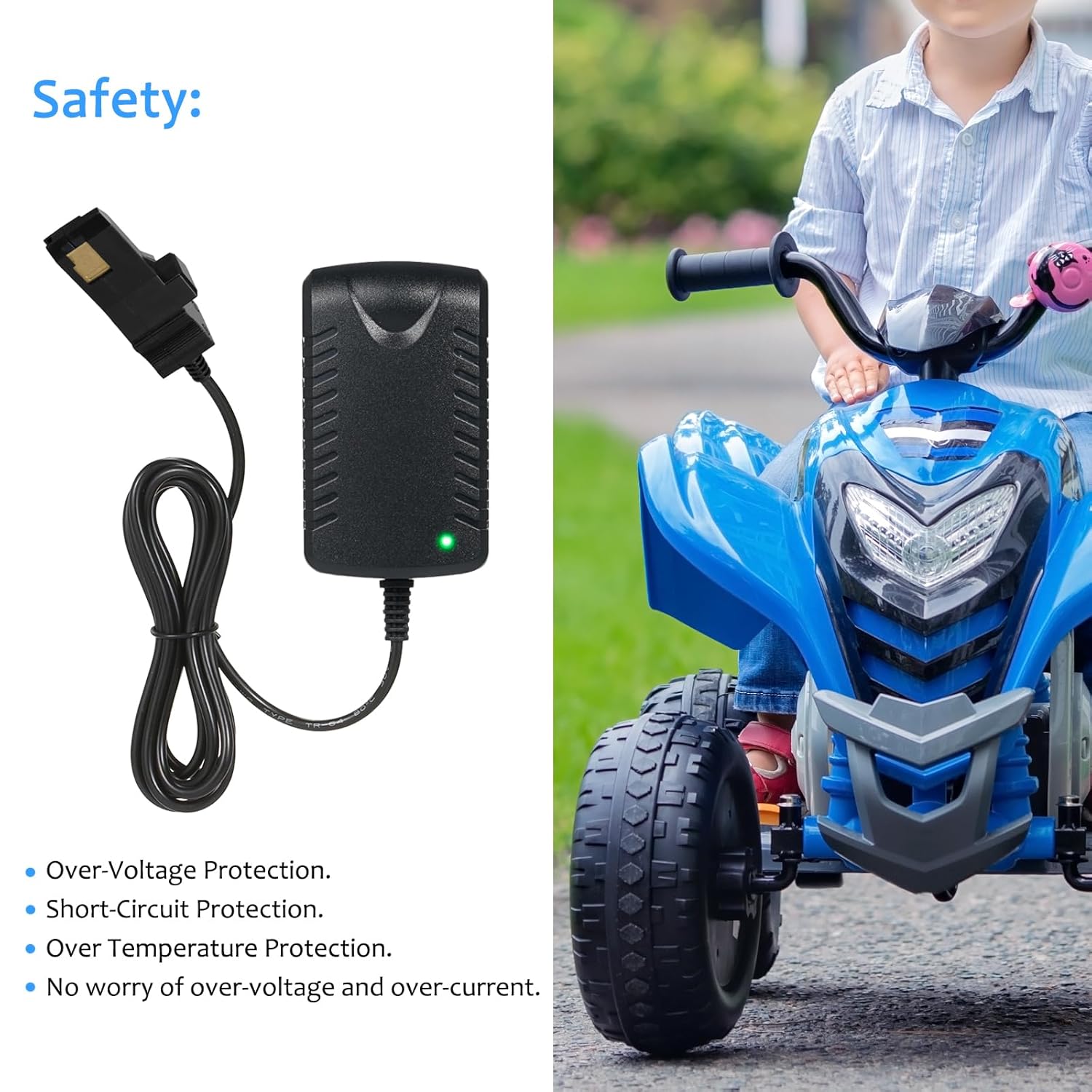 This is perfect for power wheels it also has a light to show whether it is charging or not. Easy to hook up and use