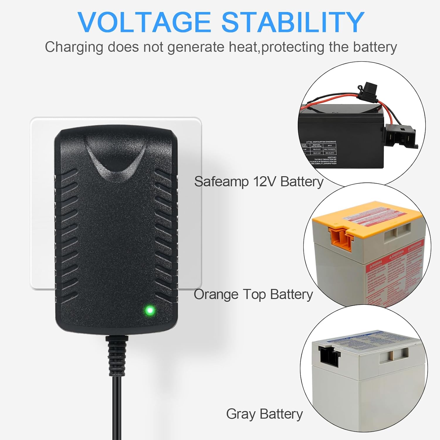 Este carregador reutilizável é compatível com as baterias Fisher-Price Power Wheels, incluindo os modelos 1001175653, 00801-0638 e 00801-1869, além da SafeAmp 12V 9AH Battery. A tecnologia de carregamento inteligente é um dos grandes diferenciais deste produto, que conta com um LED inteligente: a luz vermelha indica que o carregamento está em andamento, enquanto a luz verde sinaliza que a bateria está completamente carregada, evitando sobrecargas e prolongando a vida útil da bateria.