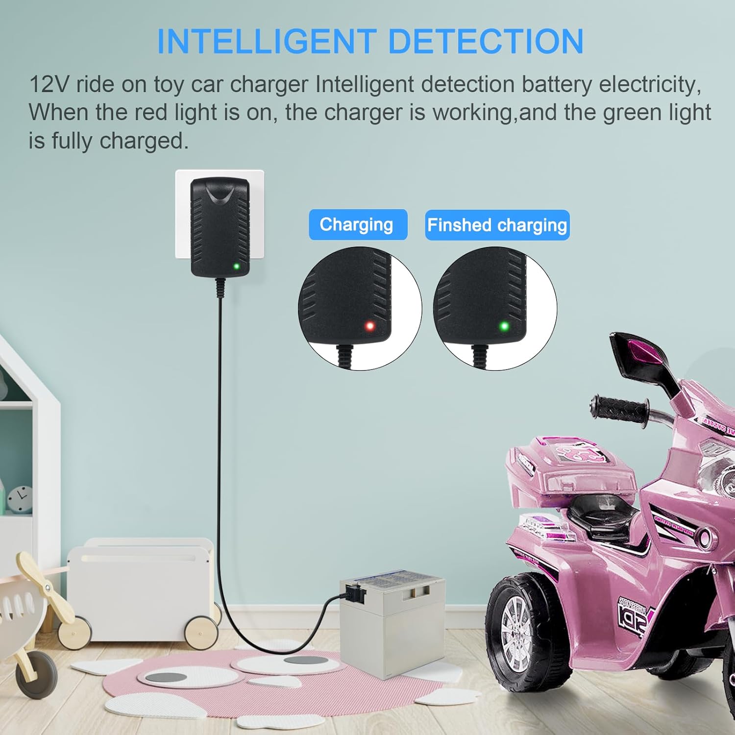 This is perfect for power wheels it also has a light to show whether it is charging or not. Easy to hook up and use