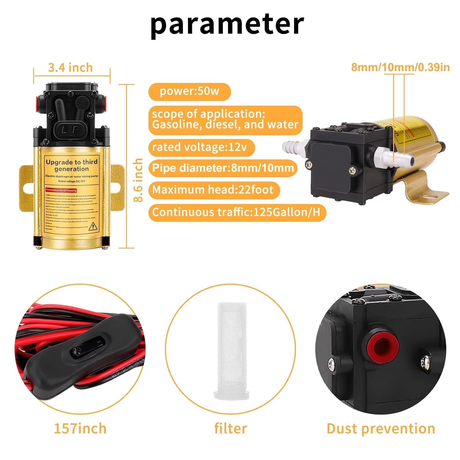 Bomba de Transferência de Combustível 12V – Bomba Elétrica Portátil para Gasolina e Diesel, Transfere até 125 Galões por Hora, Ideal para Veículos
