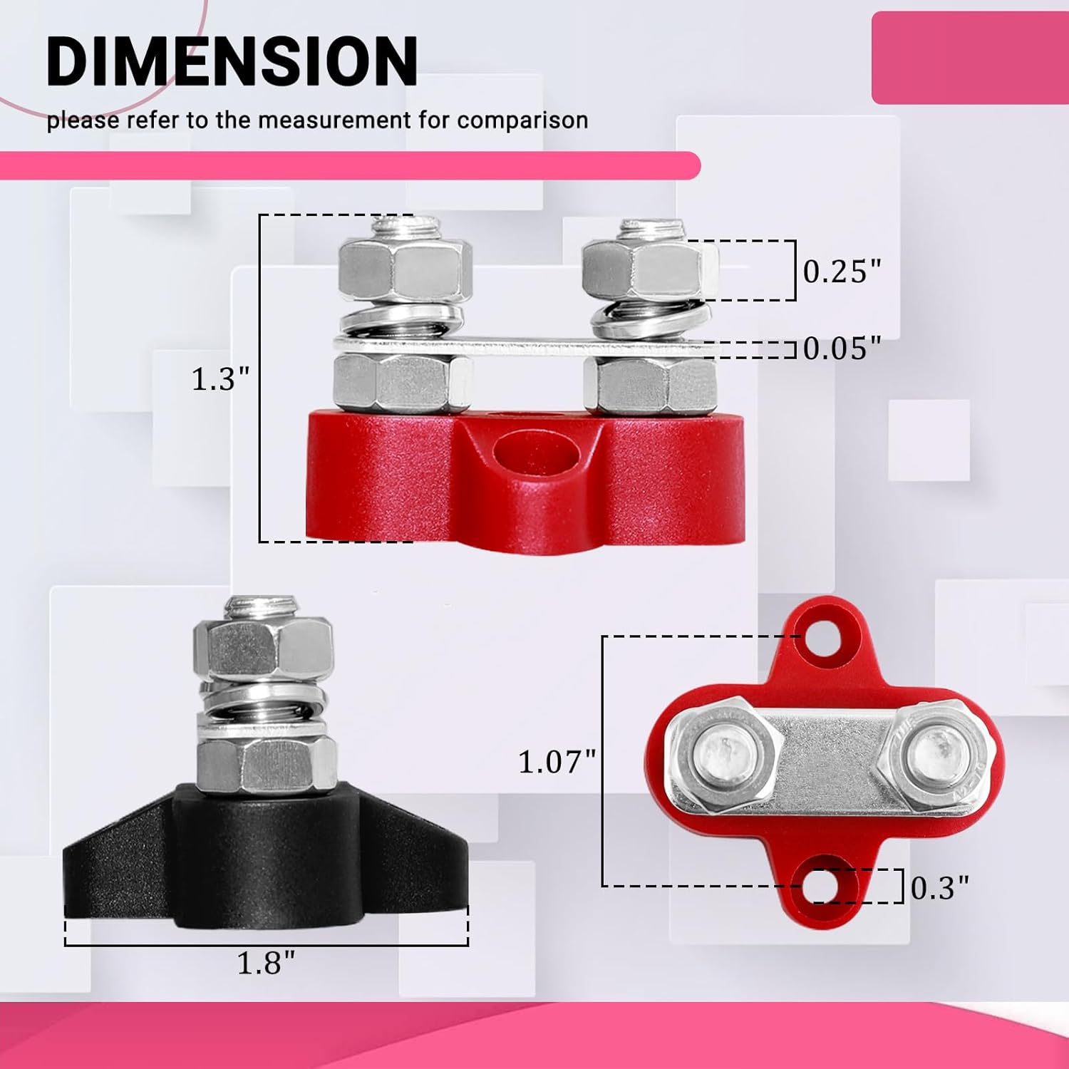 – INSTALAÇÃO SIMPLES: Nossos postes de junção de bateria apresentam um design de instalação simples com fixação por parafusos, incluindo dois orifícios de montagem para um encaixe seguro em qualquer orientação. Configure seu bloco de terminais de forma rápida, fácil e segura.