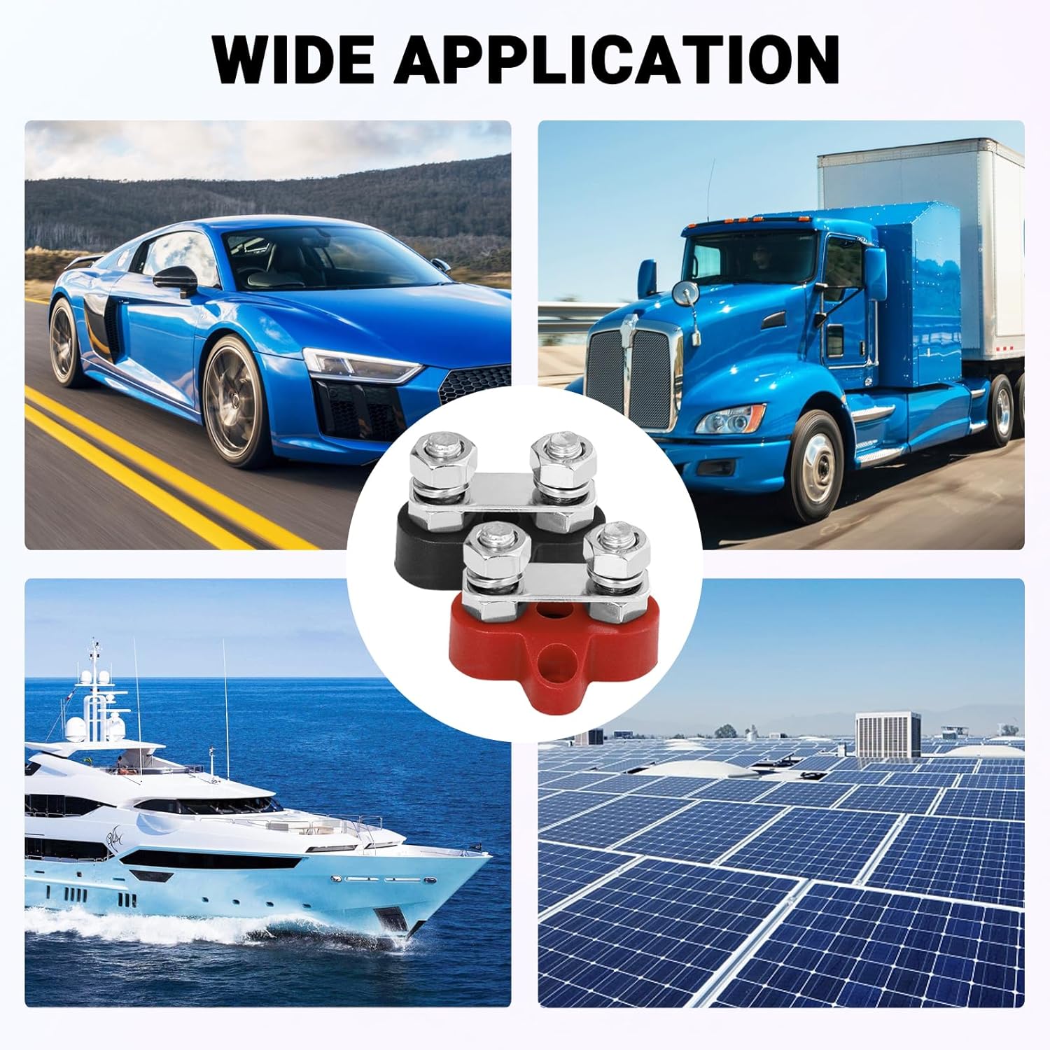 – COMPATIBILIDADE UNIVERSAL: Desde barcos a caminhões e carros, este terminal de bateria pesado funciona perfeitamente em todos os seus veículos. Confie em nosso bloco de terminais de barramento para uma conexão confiável em seus sistemas elétricos automotivos ou marinhos.