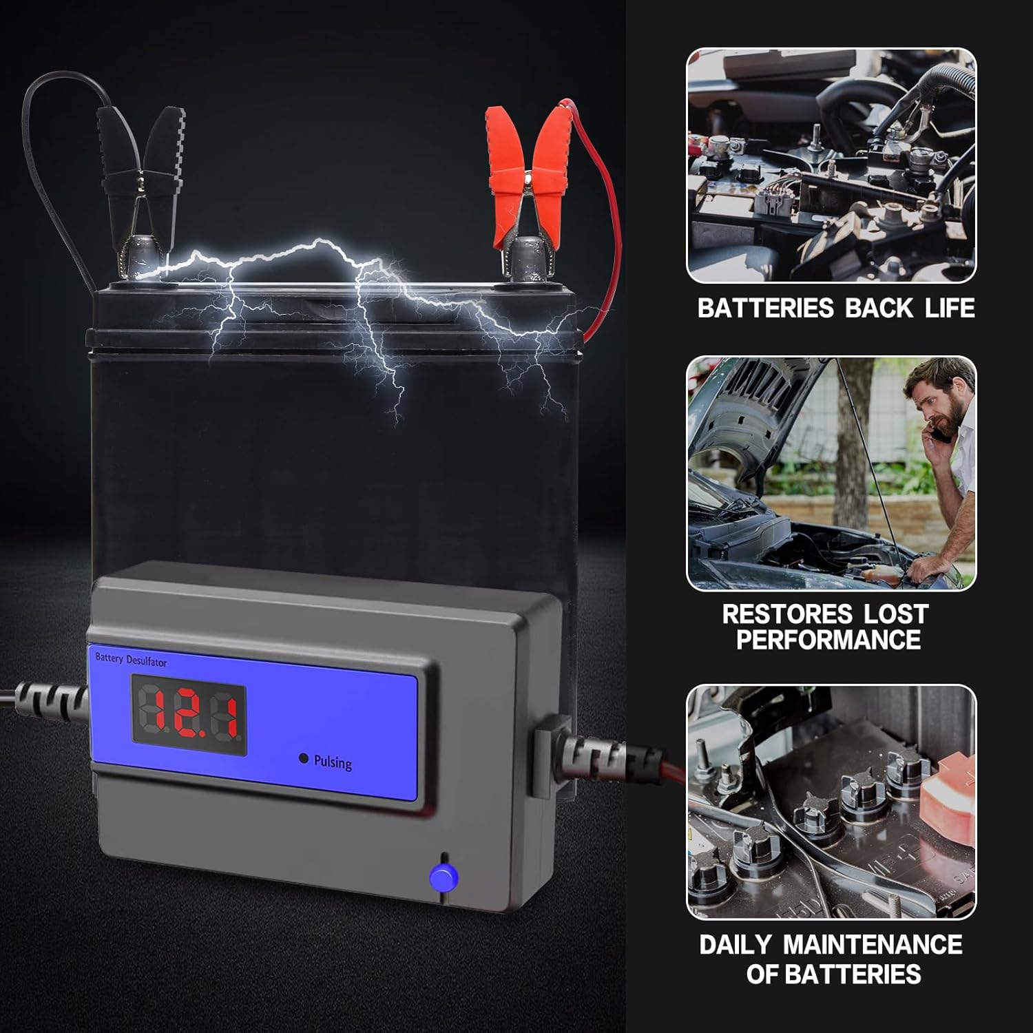 🔋 Nota: Este desulfator é destinado a baterias sulfatas, não a baterias mortas. Baterias que precisam ser descartadas não podem ser reparadas. O produto não resolverá todos os problemas da bateria, mas efetivamente desulfata. É ineficaz para baterias com placas danificadas, eletrólito seco ou falta severa de eletrólito. A bateria deve ser capaz de ser carregada ao utilizar nosso dispositivo desulfator.