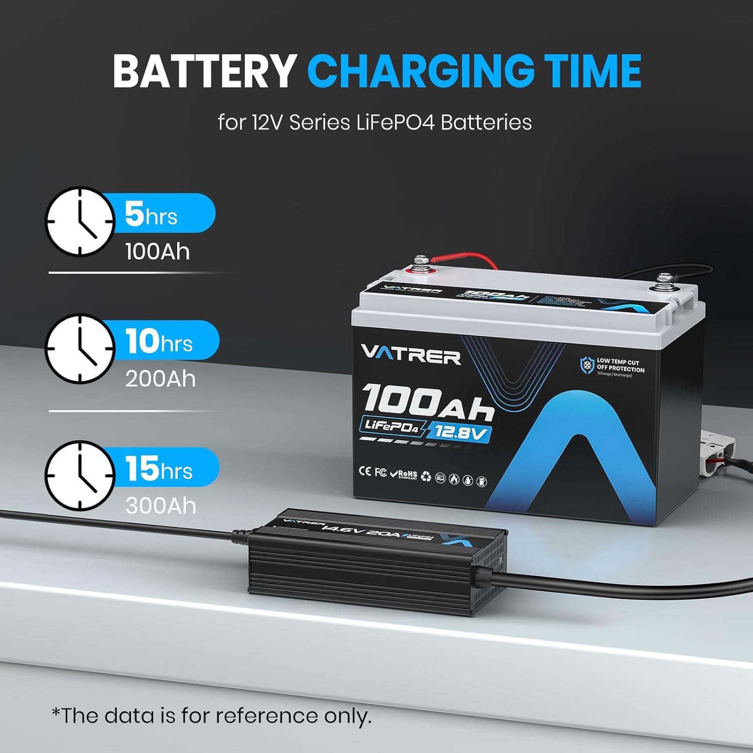 I use this 14.6V 70A fast-charging lithium battery charger for my RV battery. It’s compatible with various 12V lithium batteries, which is very convenient. The 70A current really speeds up the charging time. Five stars!