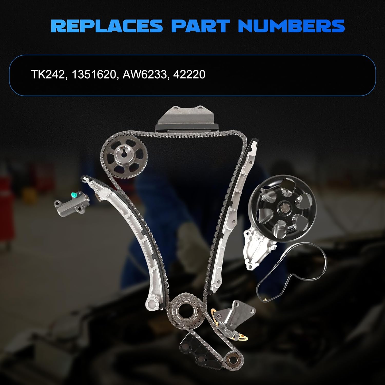 This was an easy install for my daughter’s Acura TSX – the kit came with everything we needed other than a stray gasket that came as a liquid gasket from the factory on these engines for about a year (and hers is one of these) so we had to replace it with RTV, and that holds beautifully since we didn’t go overboard with it. No leaks and no problems. Was great to get the replacement water pump as well since if this engine had used a timing belt a water pump replacement would happen even more often, and I think it’s a good preventative idea, even though, in our case we didn’t have problems with water pump pressure. Still, after install the new pump has dropped the peak temp by almost 10 degrees which is pretty substantial and very helpful on these hot-running little engines. Chain is well made, as are sprockets, guides, tensioner, etc., and now that it’s in place the engine noise is reduced and after the first week the MPG is just slightly up, although that’s probably a fluke. Still, overall a good, complete, well-made kit and I recommend it.