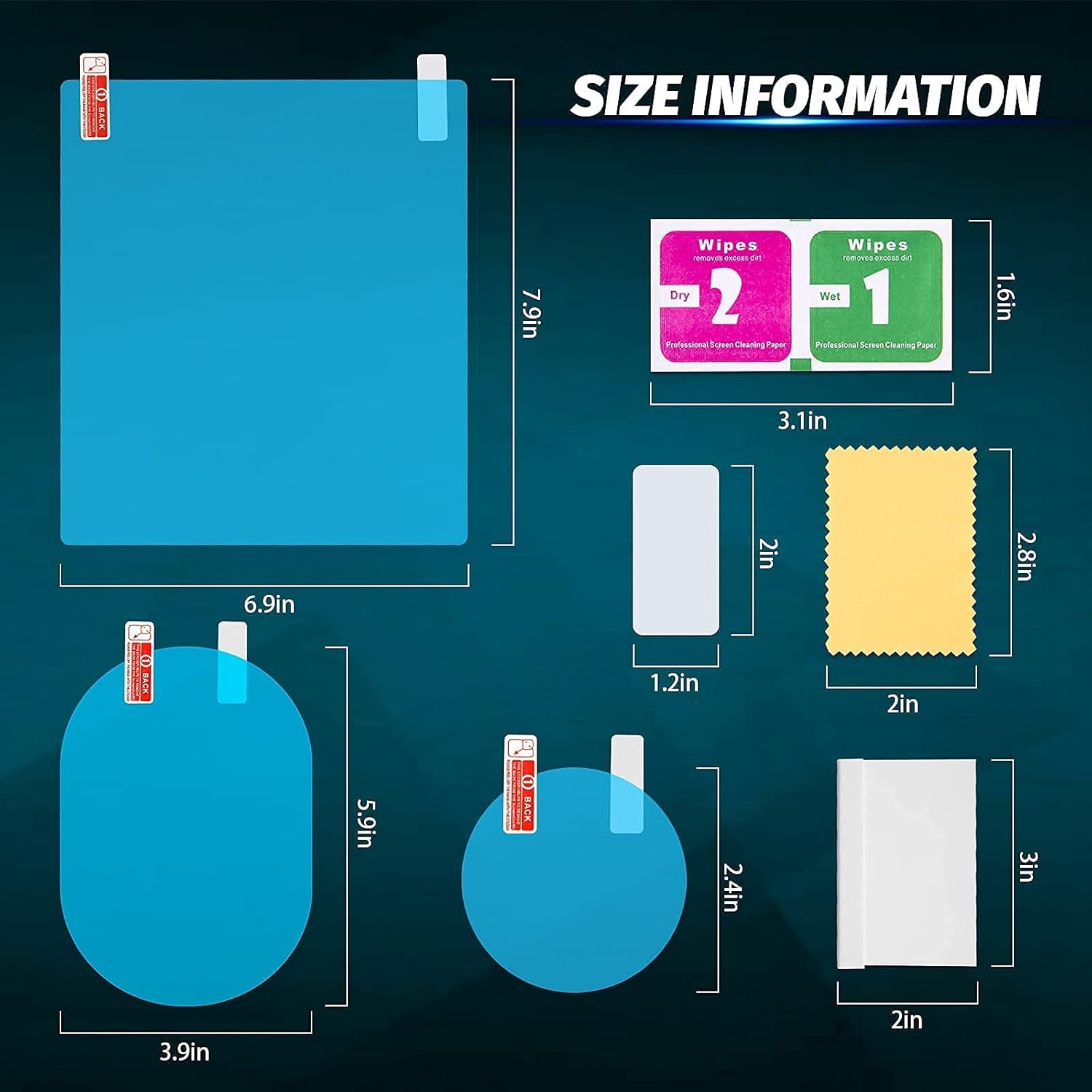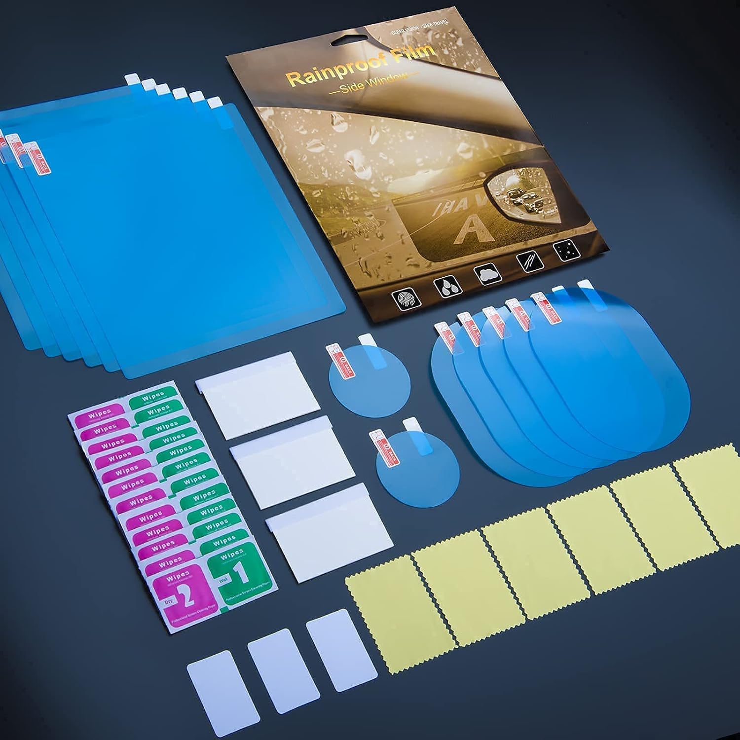 O conjunto contém 14 peças em 3 tamanhos diferentes, permitindo que você cubra uma variedade de superfícies. Além disso, o kit inclui um adesivo de teste em formato circular, que facilita a avaliação da eficácia do produto. Para garantir a máxima proteção e segurança, recomenda-se a aplicação do filme tanto nos espelhos retrovisores quanto nas janelas do veículo.