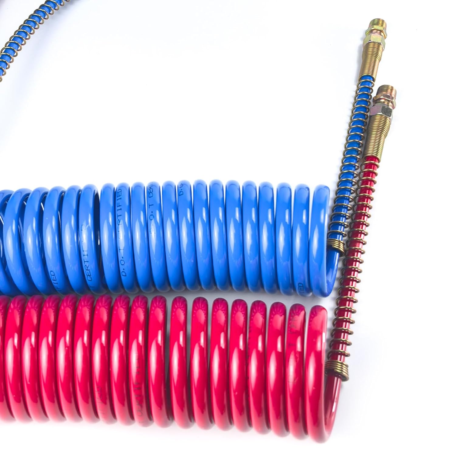 O design anti-kinking mais seguro é uma das características que diferencia nossa mangueira. As linhas de ar vermelha e azul são equipadas com uma capa de proteção em mola, que previne o enrosco da mangueira de ar, facilitando a instalação em espaços apertados e adaptando-se perfeitamente ao movimento telescópico dos caminhões semirreboque.