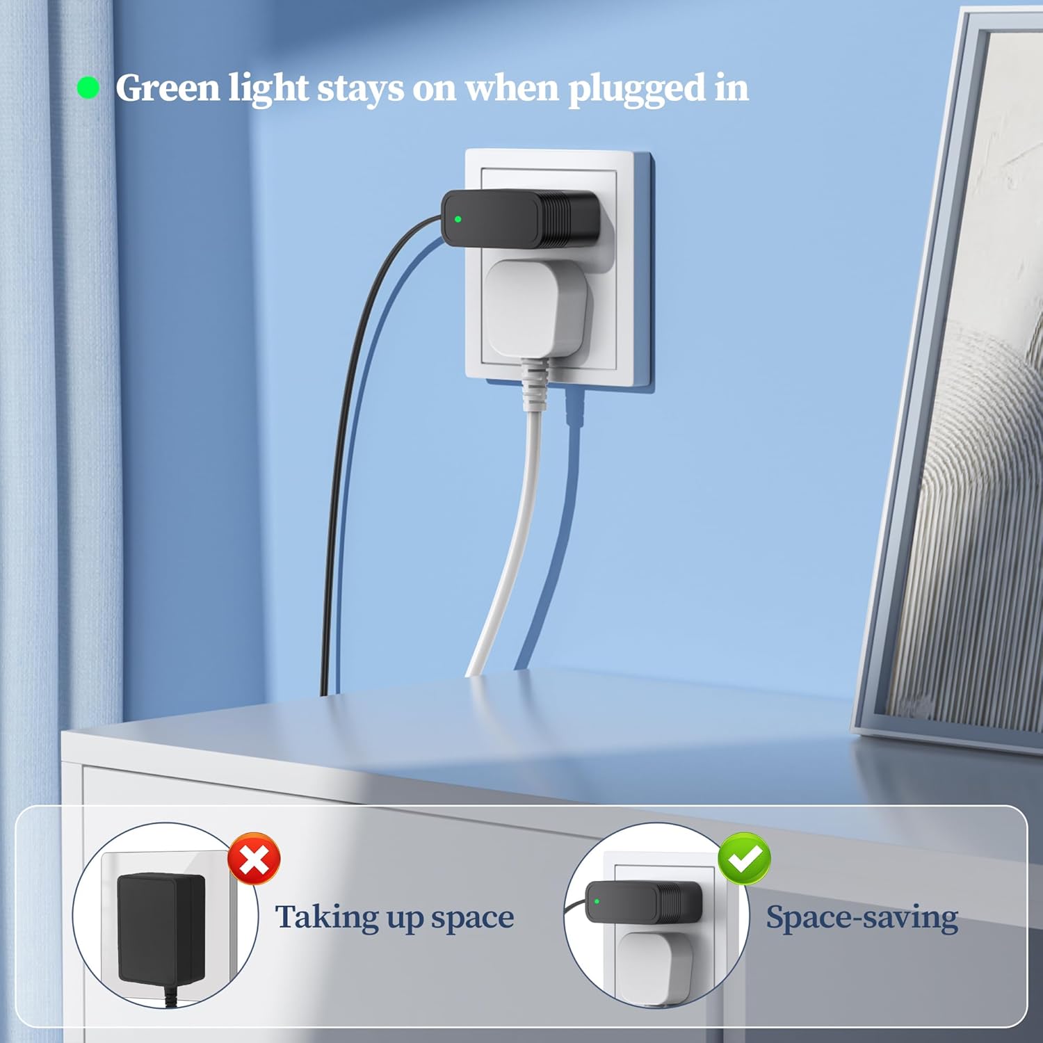 • Especificações do Carregador: Saída máxima de 15V 1A, com cabo de 5 pés (1,5 m) e plugue padrão dos EUA. O carregador possui resistência a dobras e puxões, garantindo uma longa vida útil.
