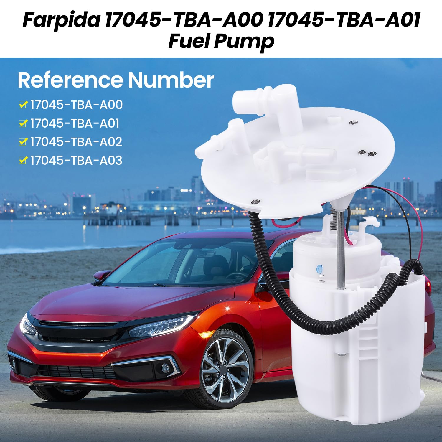 - Adequação do Veículo: O Módulo de Bomba de Combustível 17045-TBA-A00 / 17045-TBA-A01 é compatível com o Honda Civic 1.5L e 2.0L dos anos 2016 a 2020. Verifique a tabela de compatibilidade, fotos da peça, número da peça OE e descrição para garantir que é o que você precisa.