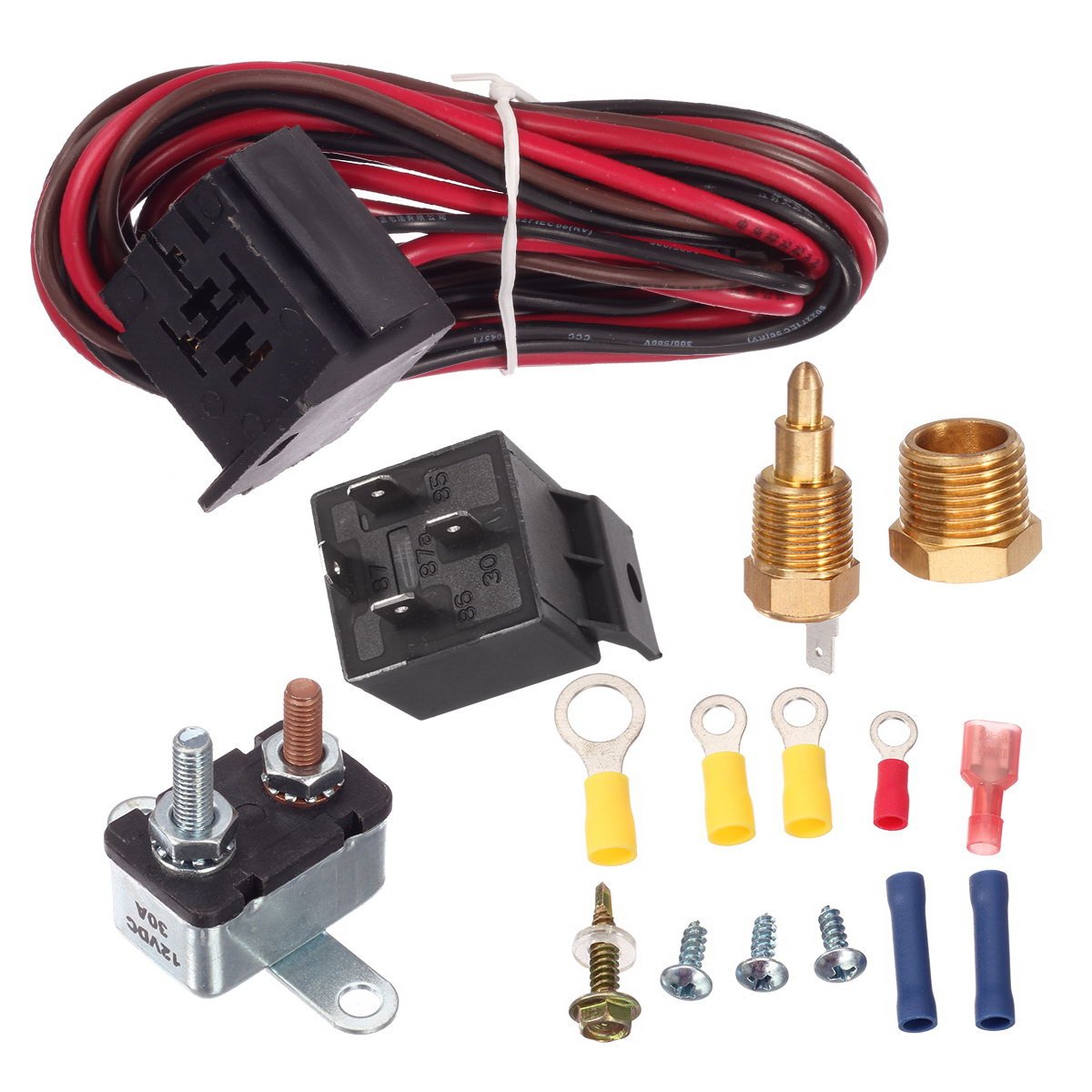 Nice heavy duty electric fan wiring kit. Comes complete with all you need to get your engine cooling fast. I will admit the instructions isn’t the easiest to understand but with the help of Google and your tube they will assist you in wiring it up properly. I do want to add and it is a must the sensor that screws into the thermostat housing MUST be grounded in order for it to work. If it not grounded to the motor and the motor grounded to the body then it will NOT kick on and your motor will overheat. So make sure you have a good ground and you can’t go wrong.