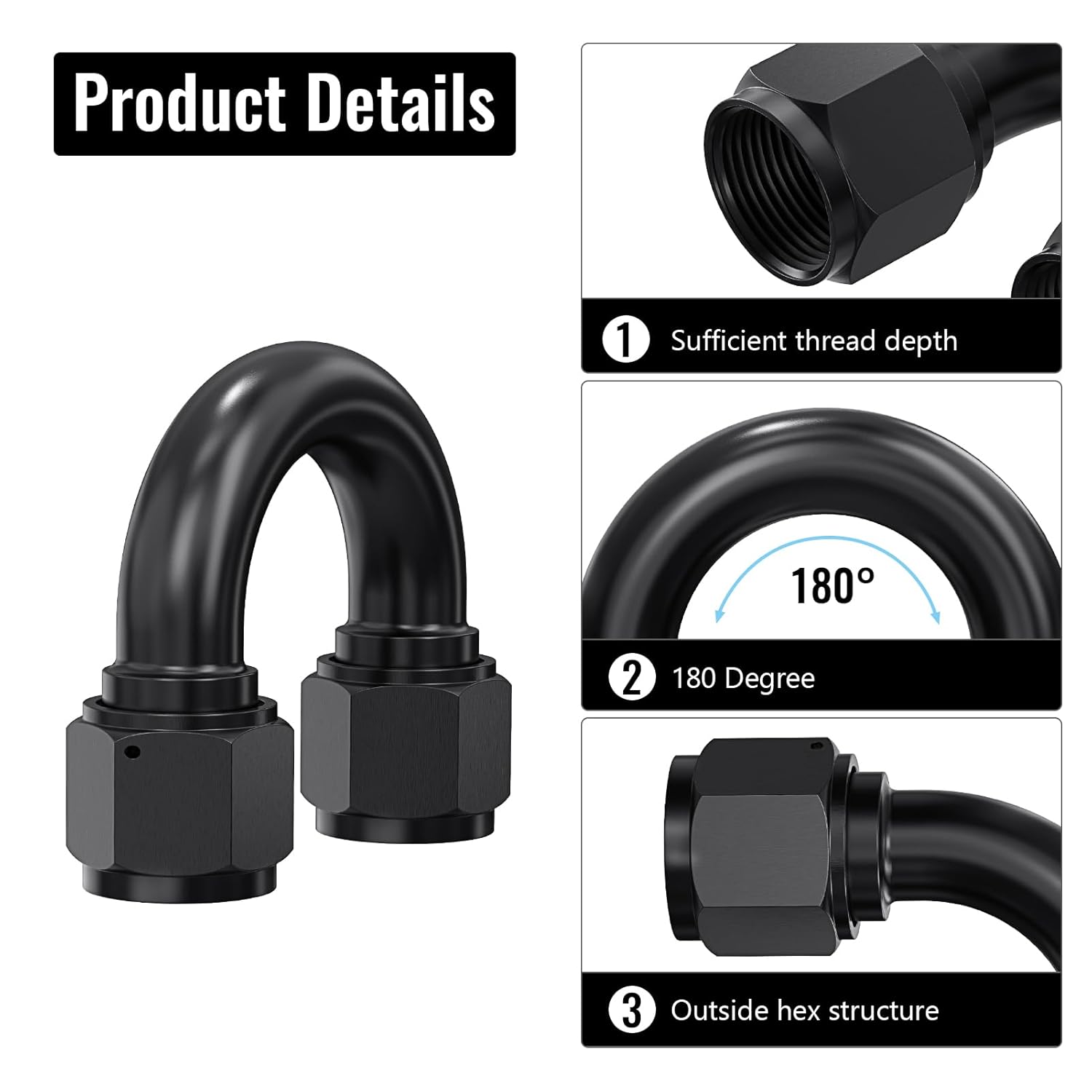 Versatile Compatibility: 10AN female to 10AN female configuration works well with a wide range of automotive fuel and oil line systems.