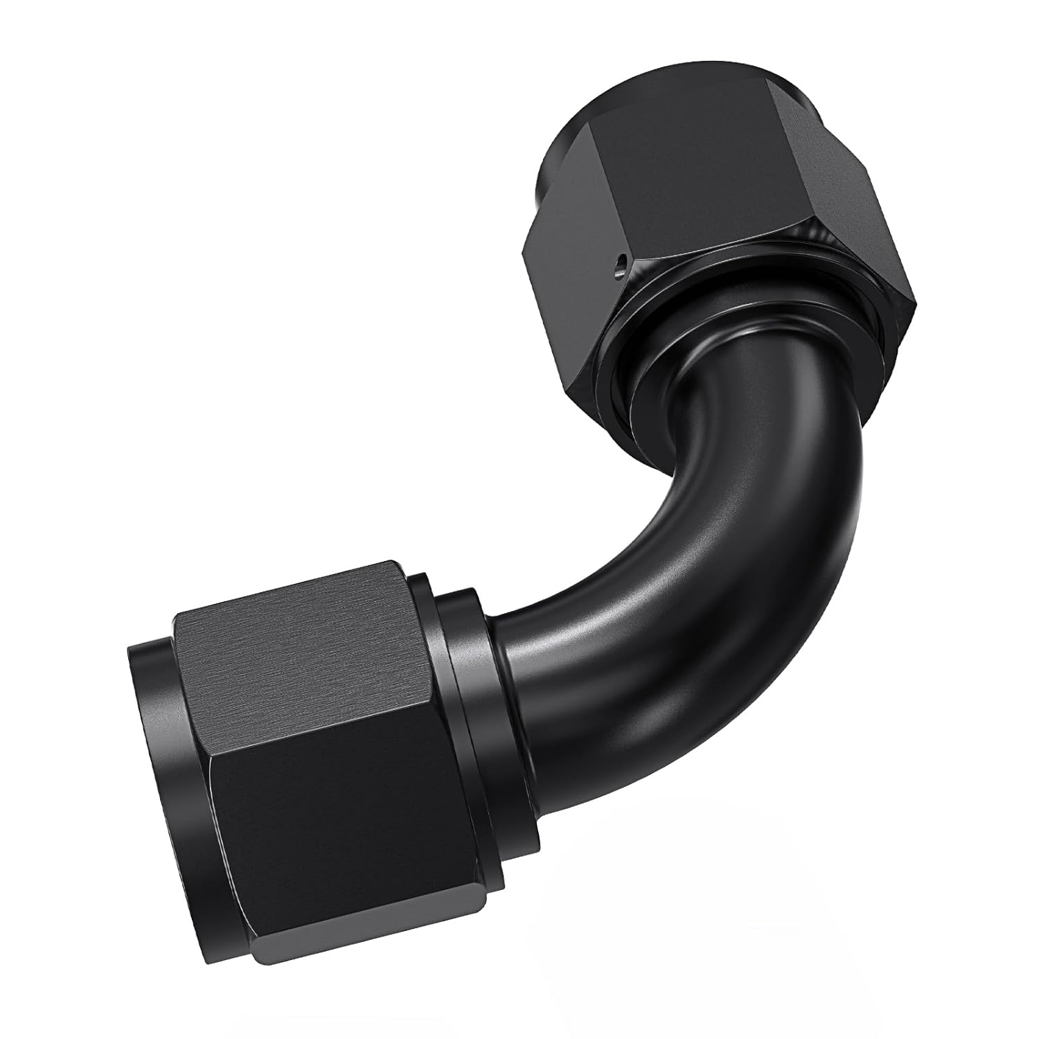 The TRUCKMETER 90 Degree 10AN Female to 10AN Female Swivel Flare Union Fitting Adapter is an excellent choice for anyone looking to modify or upgrade their vehicle’s fuel or oil systems. The hard aluminum construction with a black anodized finish ensures durability and corrosion resistance, making it perfect for use in high-pressure automotive environments.
