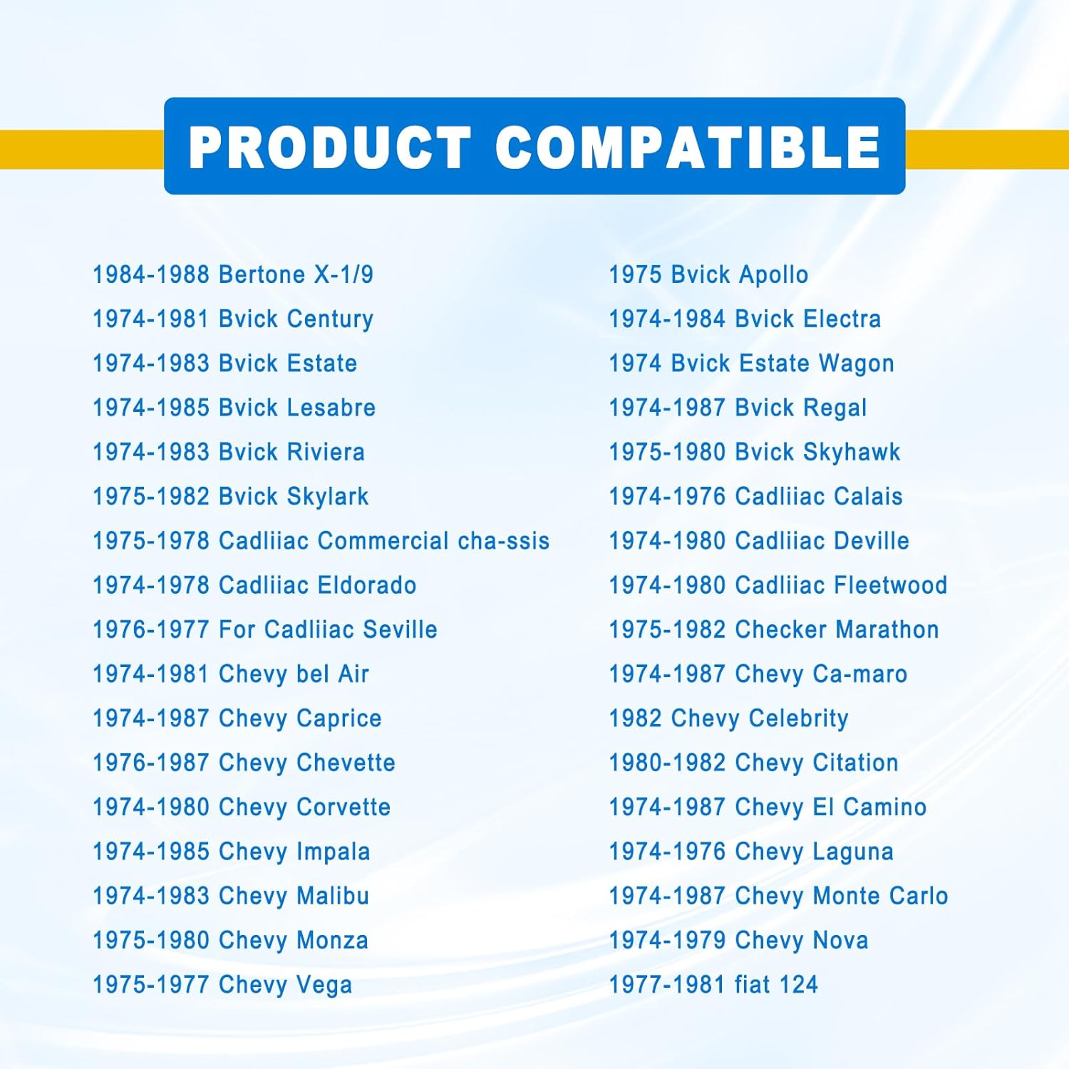 – Compatibilidade: Projetado para modelos Chevy, Pontiac, Oldsmobile e Buick de 1974 a 1988.