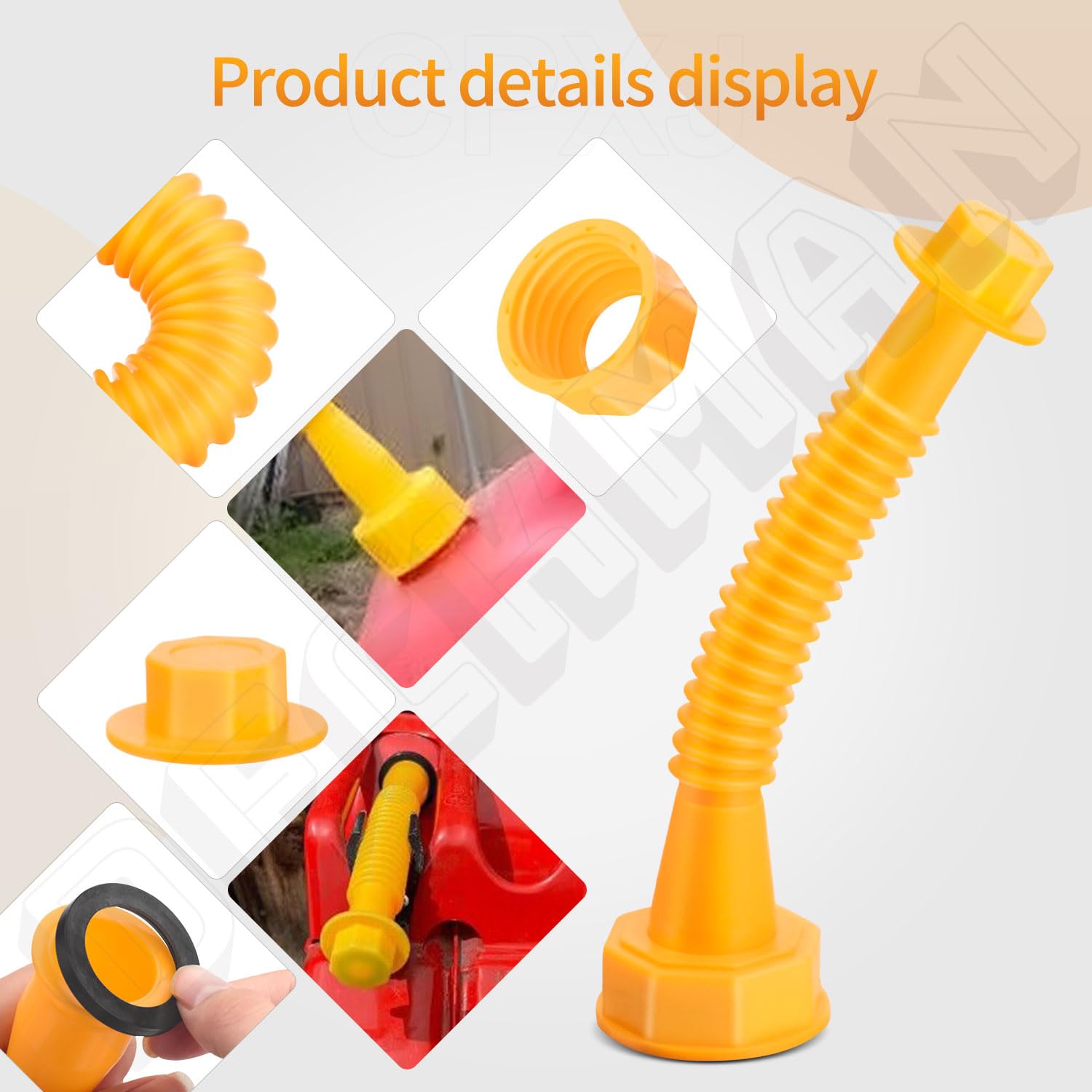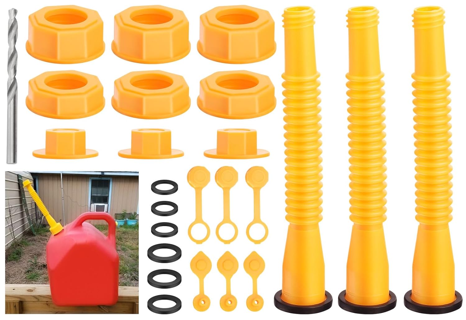 Great flexibility on the spouts but the vent crack if hits vent on something if it turns over and rolls in trunk side or break off if there is pressure from gas in the can and it is warm out. Will update if I find a solution to the cracked ones or if I find a replacement plug. Have to have a vent to get the free flow of gas because gas cans suck now because most don’t have vents built into the design like they use to when I was young (70’s, 80’s & 90’s)