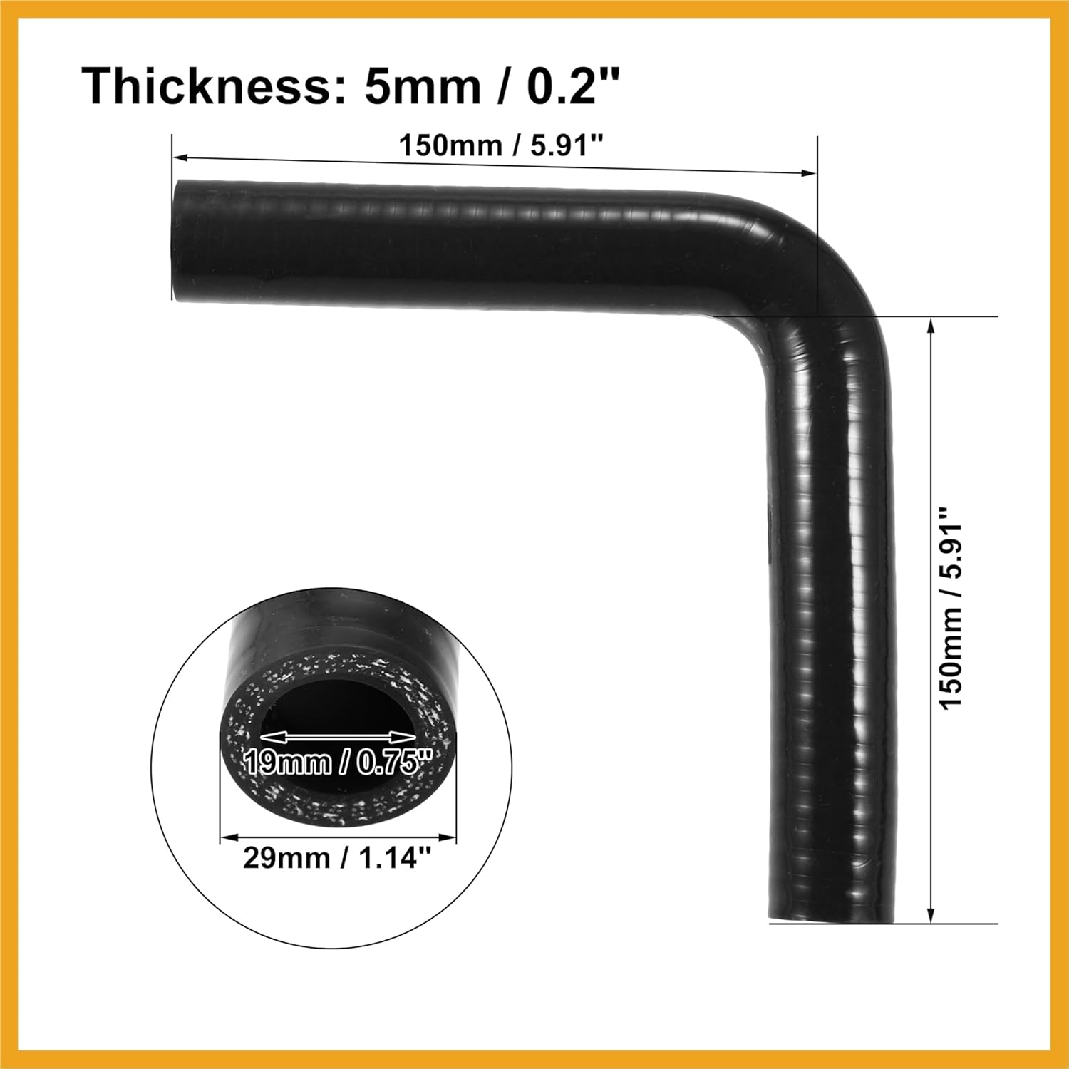 Mangueira Redutora de Silicone 19mm 0.75″ ID Curva de 90 Graus para Turbo e Intercooler – Preto, Material Durável