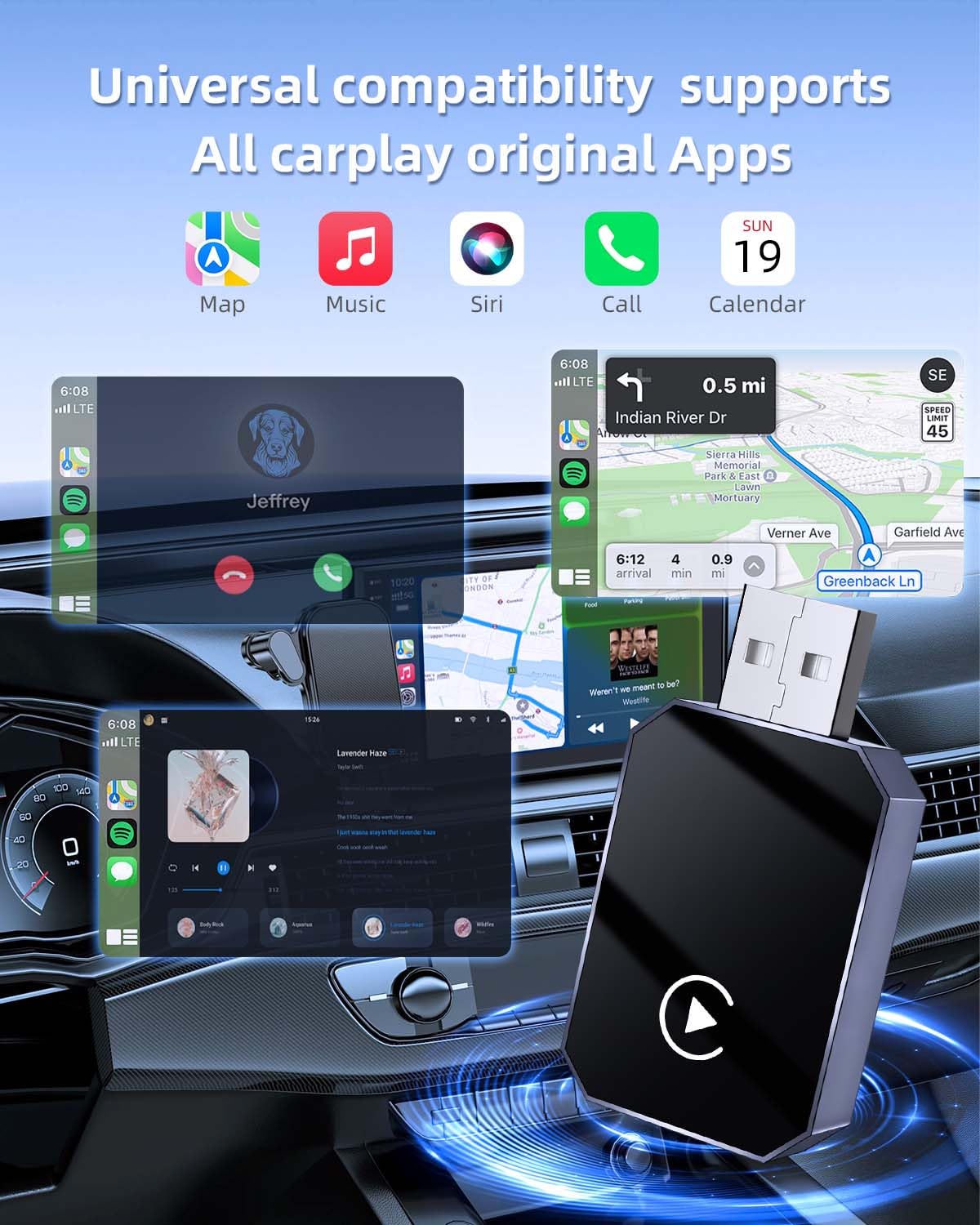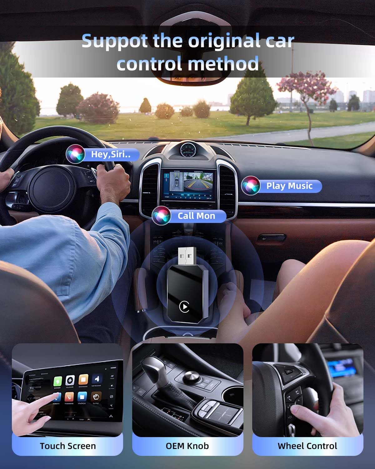 Com o nosso adaptador CarPlay sem fio, você pode acessar música, navegação, mensagens e muito mais diretamente na tela do seu carro. A operação sem fio permite um controle original e rápido, enquanto os comandos de voz da Siri garantem uma experiência de condução mais inteligente e segura. Fabricado em liga de alumínio ultra leve e vidro temperado de alta qualidade, o adaptador é projetado para excelente dissipação de calor e durabilidade. Nossas caixas metálicas passaram por mais de 10.000 testes, durando três vezes mais do que os receptores de plástico convencionais.
