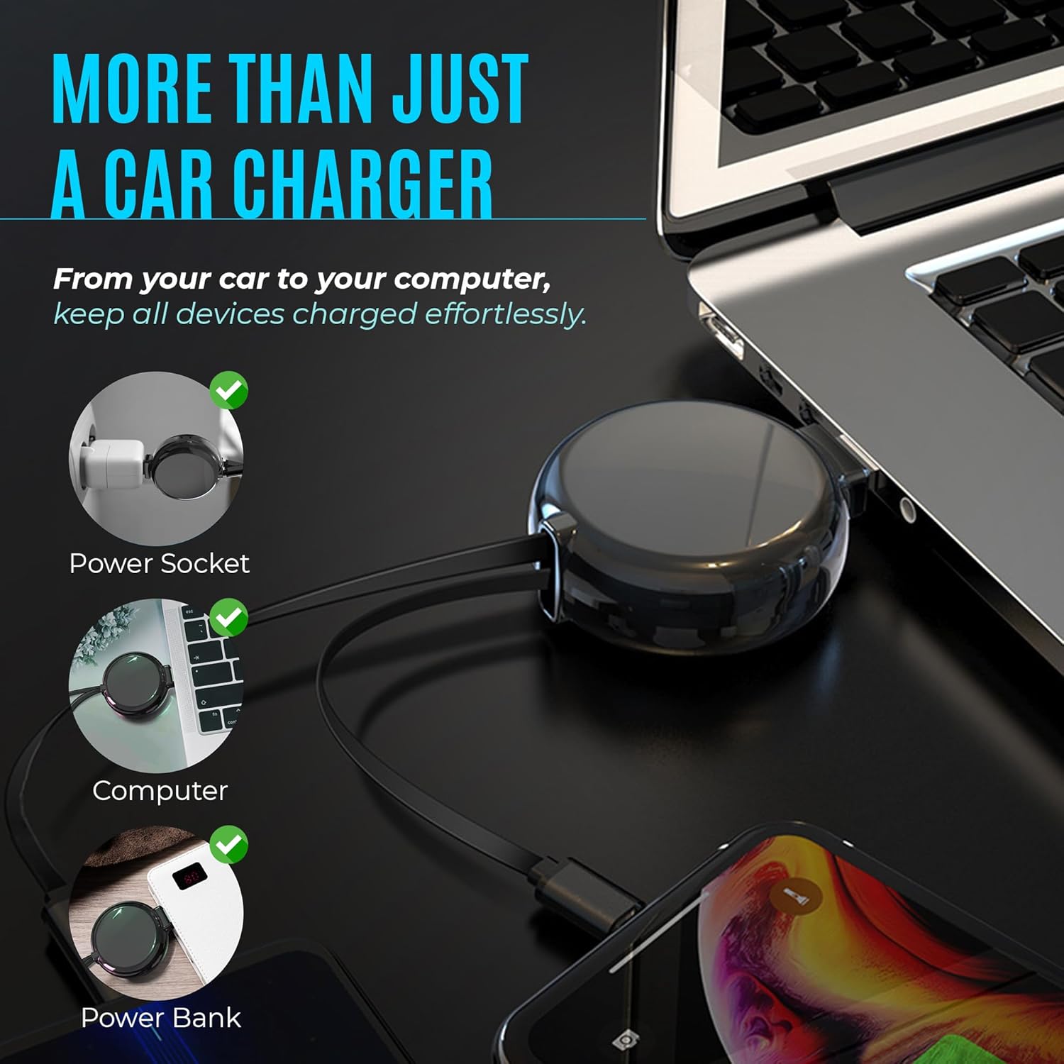 O design retrátil do carregador é uma solução inteligente para interiores de carros desordenados. Com um formato compacto, o cabo se retrai quando não está em uso, garantindo que seu carro permaneça organizado e livre de fios pendurados. Ideal para viagens, o carregador é leve e não ocupa espaço, permitindo que você o leve para qualquer lugar sem complicações.