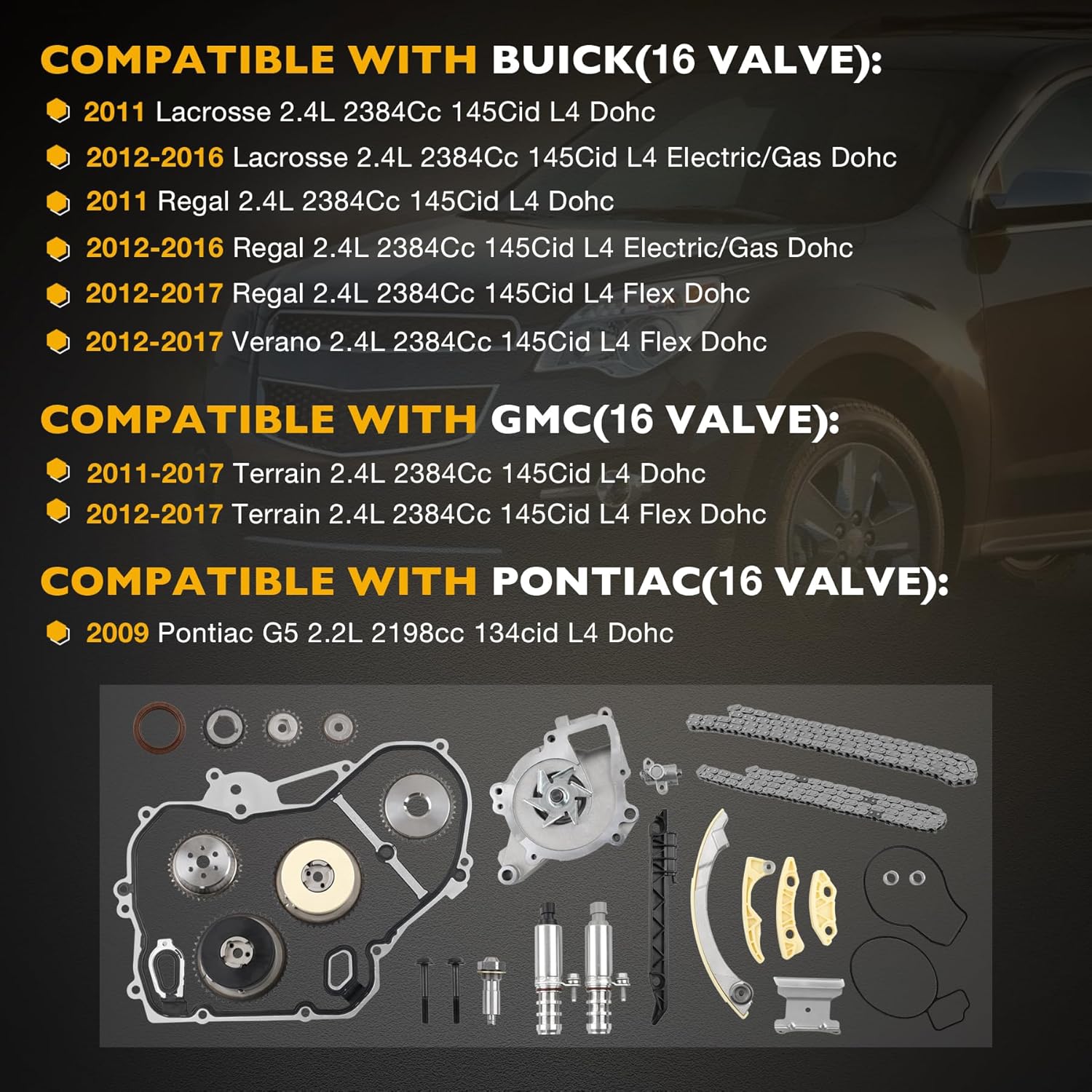 O Kit de Corrente de Distribuição do Motor 2.2 2.4 é a solução ideal para quem busca qualidade e durabilidade em componentes automotivos. Este kit é compatível com uma ampla gama de veículos, incluindo Buick Lacrosse, Regal, GMC, Pontiac e Chevrolet, fabricados entre 2009 e 2017. Com um design preciso que atende ou supera as especificações OEM, este kit não só garante um funcionamento suave e silencioso, mas também contribui para a longevidade do motor. A instalação é facilitada por um design que economiza tempo, permitindo que você retome a estrada rapidamente.