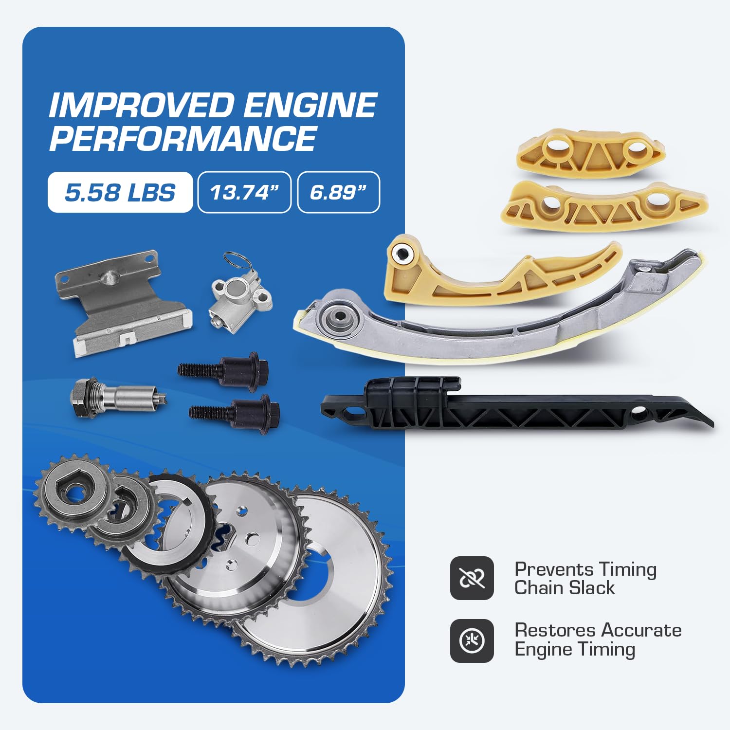 O kit substitui as peças OE# 9-4201S, 9-4201SX, 9-4202S, 12680750, 94201S, C6209S, 94201SX, 12608580, 24461834. Cada conjunto de sincronização passou por testes rigorosos, garantindo que você receba um kit confiável que mantém o motor funcionando em tempo adequado.